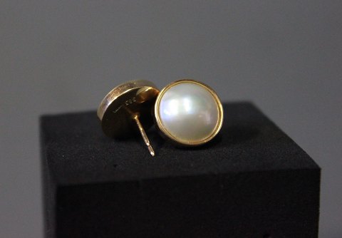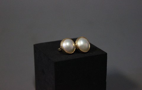 SoldBeautiful large Pearl earrings in 14 ct. gold with cultured halfpearls. Design VRENI.
