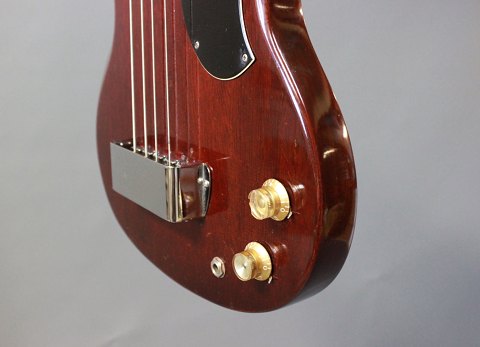 Gibson basguitar, model EB-0, fra 1967 i poleret mahogni og nyligt restaureret. Denne model blev først introduceret i 1959 og produktionen stoppede 20 år efter i 1979. Basguitaren fra årgang 1967 karakteriseres ved en tyndere hals samt andre små justeringer som adskiller sig fra de tidligere årgange.