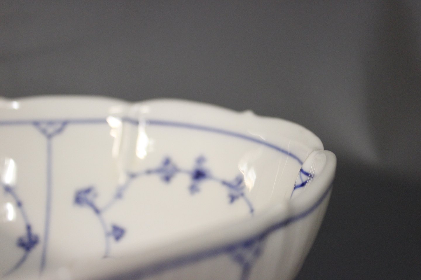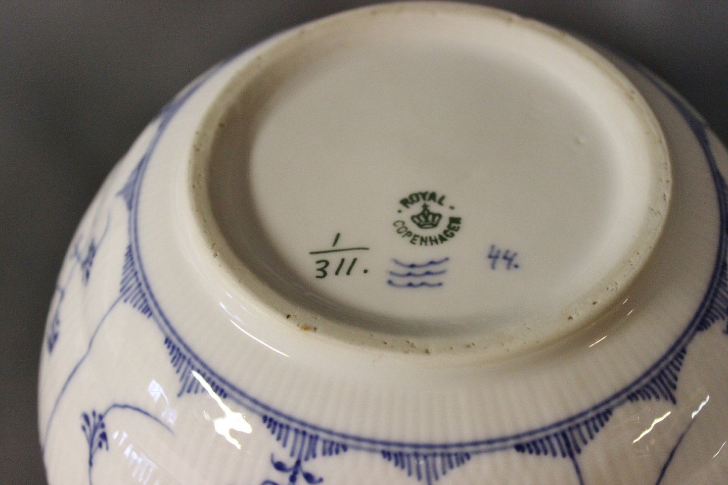 SolgtKgl. musselmalet riflet skål, #1/311.