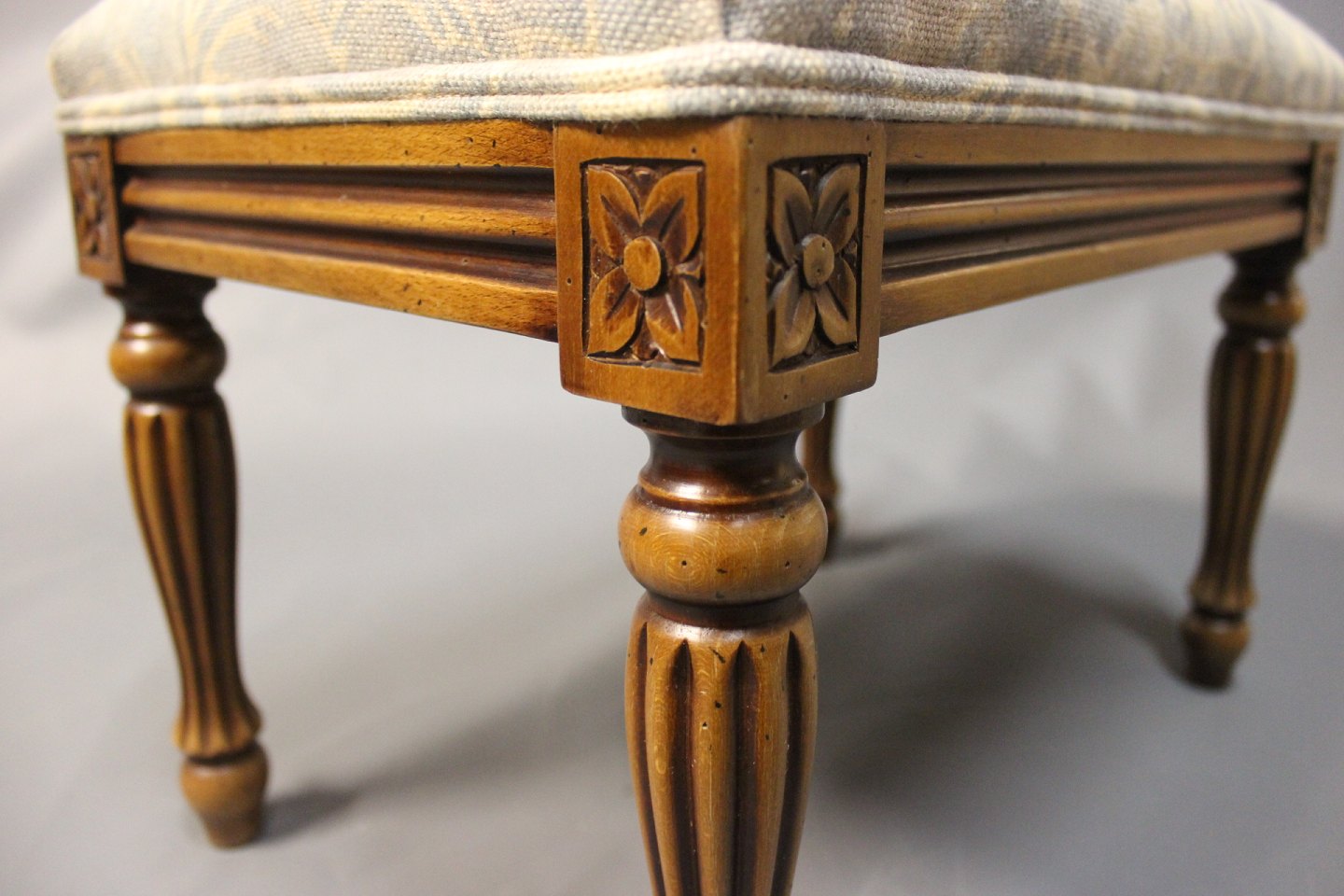 SoldSmall footstool in mahogany and light fabric from the 1950s, remaining in a very good vintage condition.