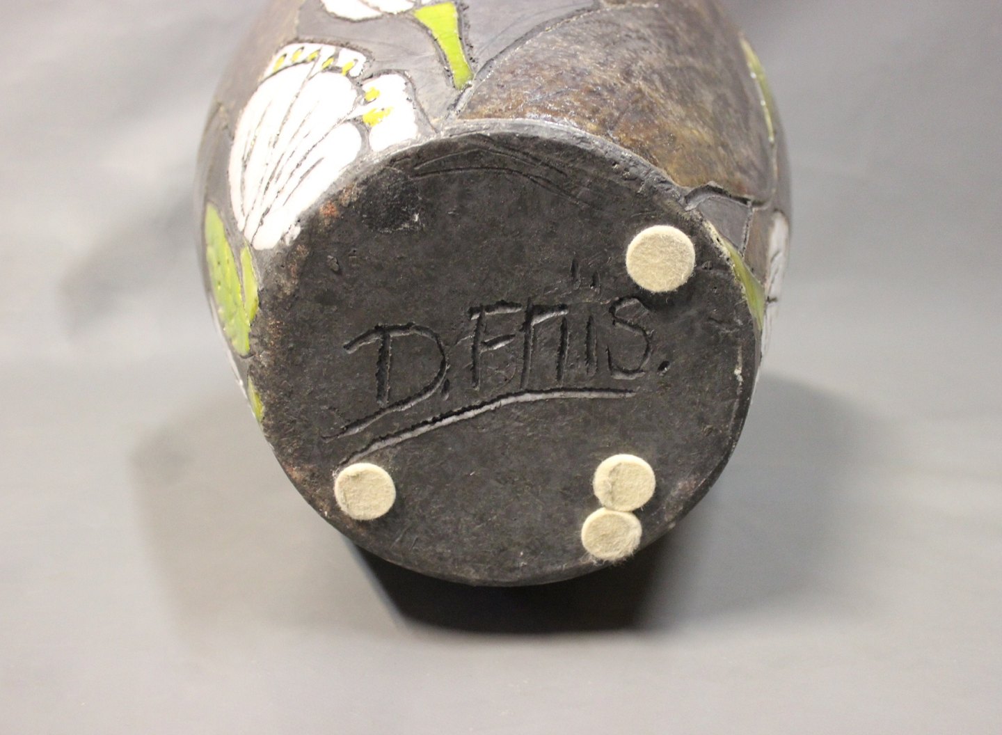 SoldLarge ceramic floor vase in beautiful colous with women motives by Dorthe Friis.