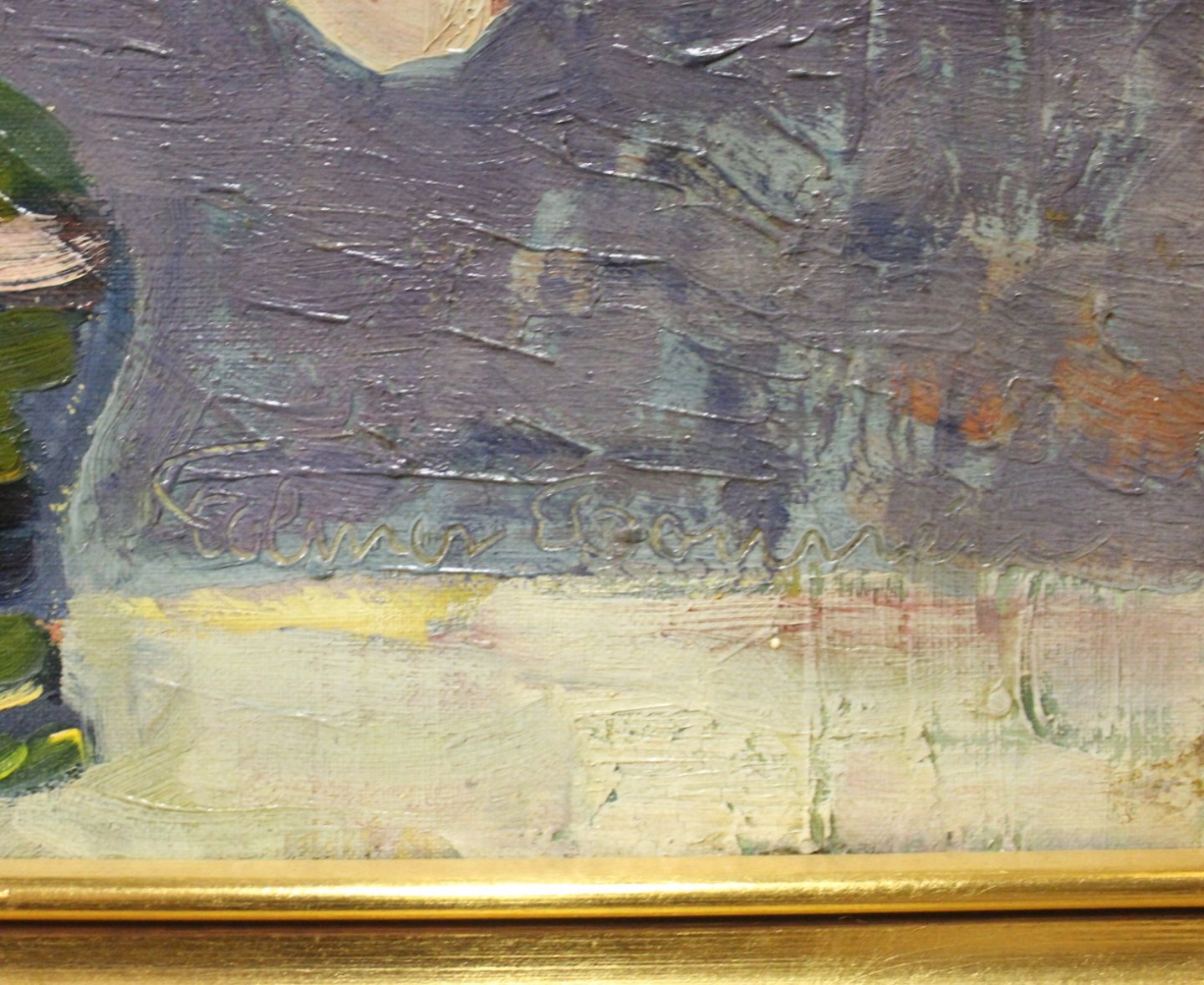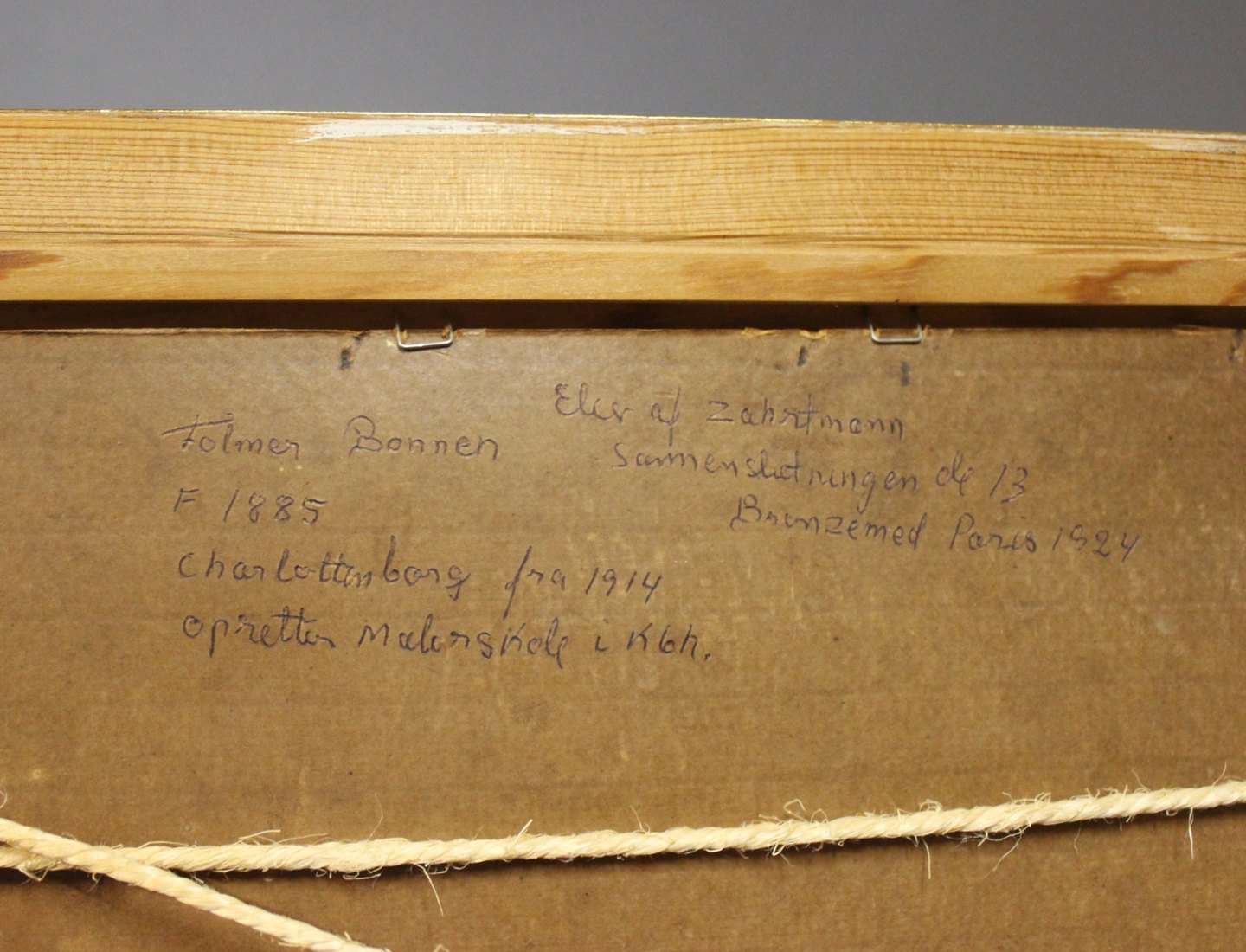 SolgtOliemaleri med blomstermotiv signeret Folmen Bonnen f. 1885.