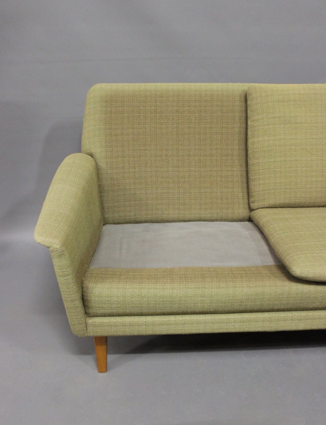 Folke Ohlsson, a respected Swedish furniture designer, is behind this sofa, which combines his focus on ergonomics and aesthetics in an elegant way. The sofa's green wool cover adds a depth of color and texture to any room, while creating a connection to nature and the surrounding landscape, which is characteristic of Scandinavian design.