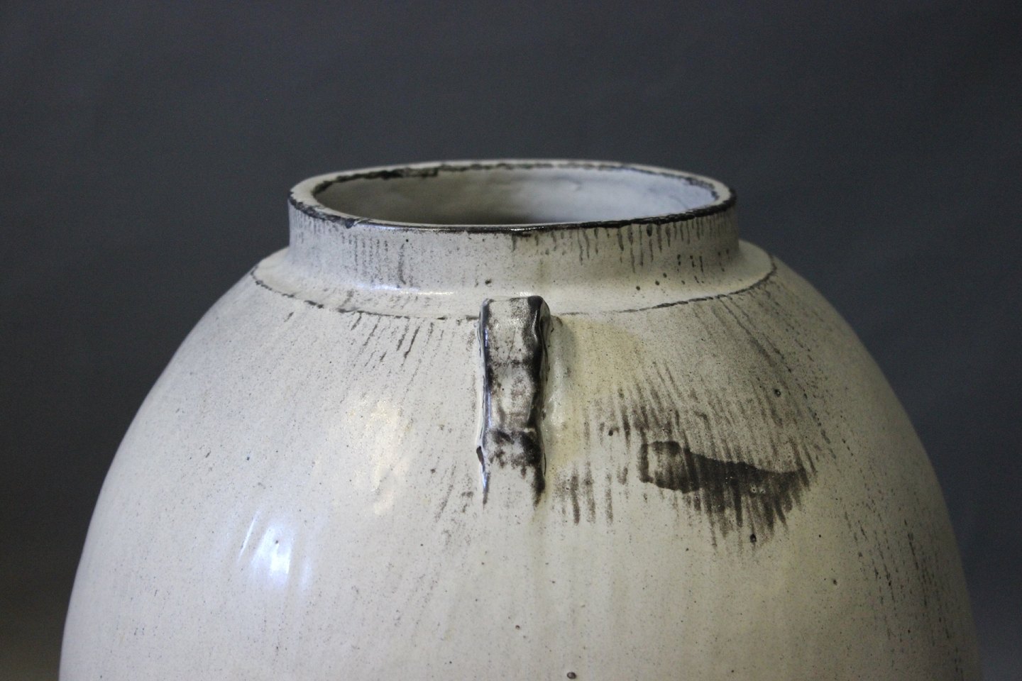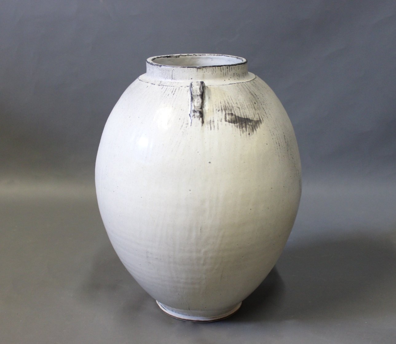 SolgtStor keramik gulvvase i grå lustre glasur udført af Svend Hammershøj for Kähler fra 1930erne.