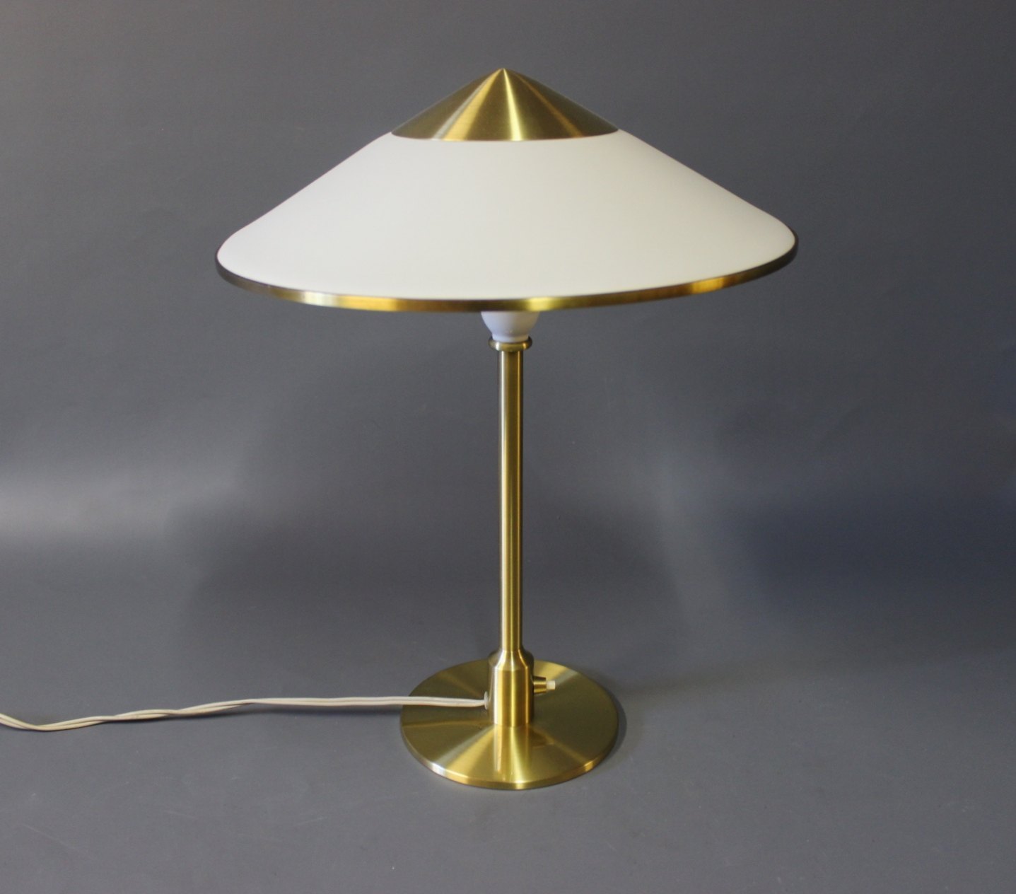 SolgtKongelys bordlampe af Fog og Mørup af skærmplast og messing. Oprindeligt kaldet T3 Minor designet af Niels Rasmussen Thykier i 1930, i 1937 blev den overtaget af Fog og Mørup og omdøbt Kongelys.