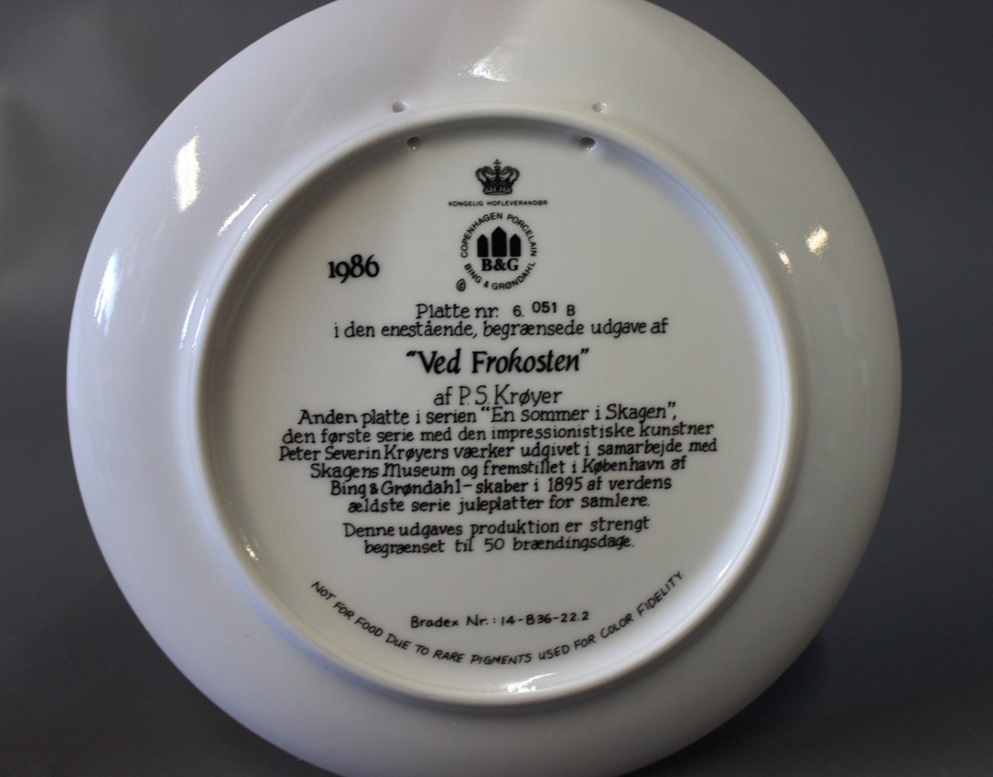 "Ved Frokosten", nr.: 6 051 B af P. S. Krøyer for B&G fra 1986. Æske og ægthedsbevis medfølger.