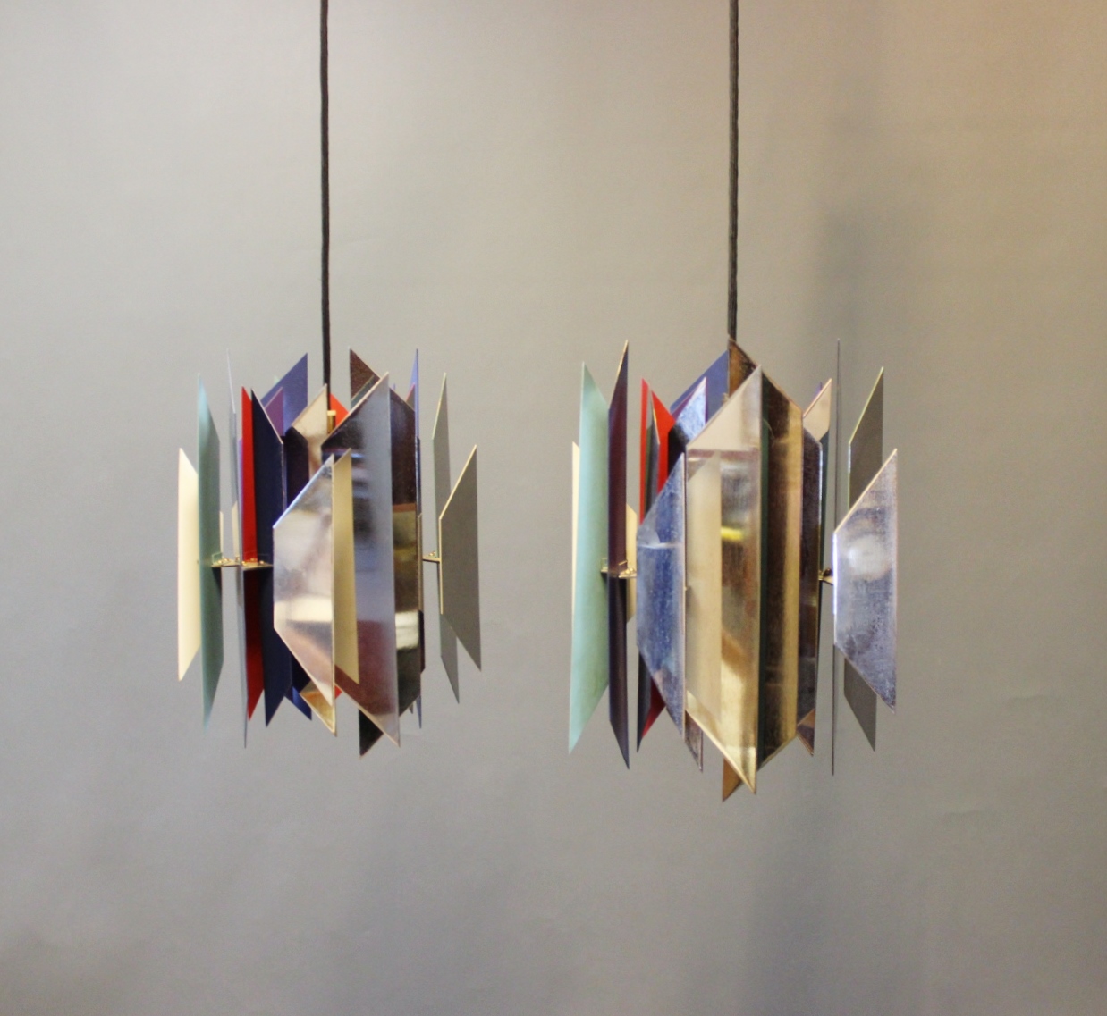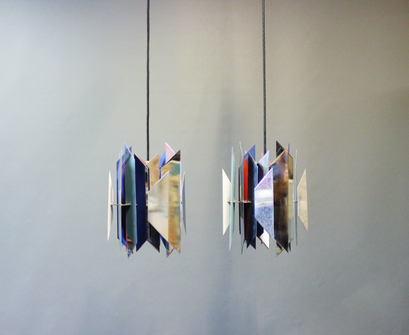 Et par Tivoli Pendler designet af Simon Henningsen i 1962 og fremstillet af LYFA i 1960erne. Pendlerne består af forkromet og lakeret metal.
