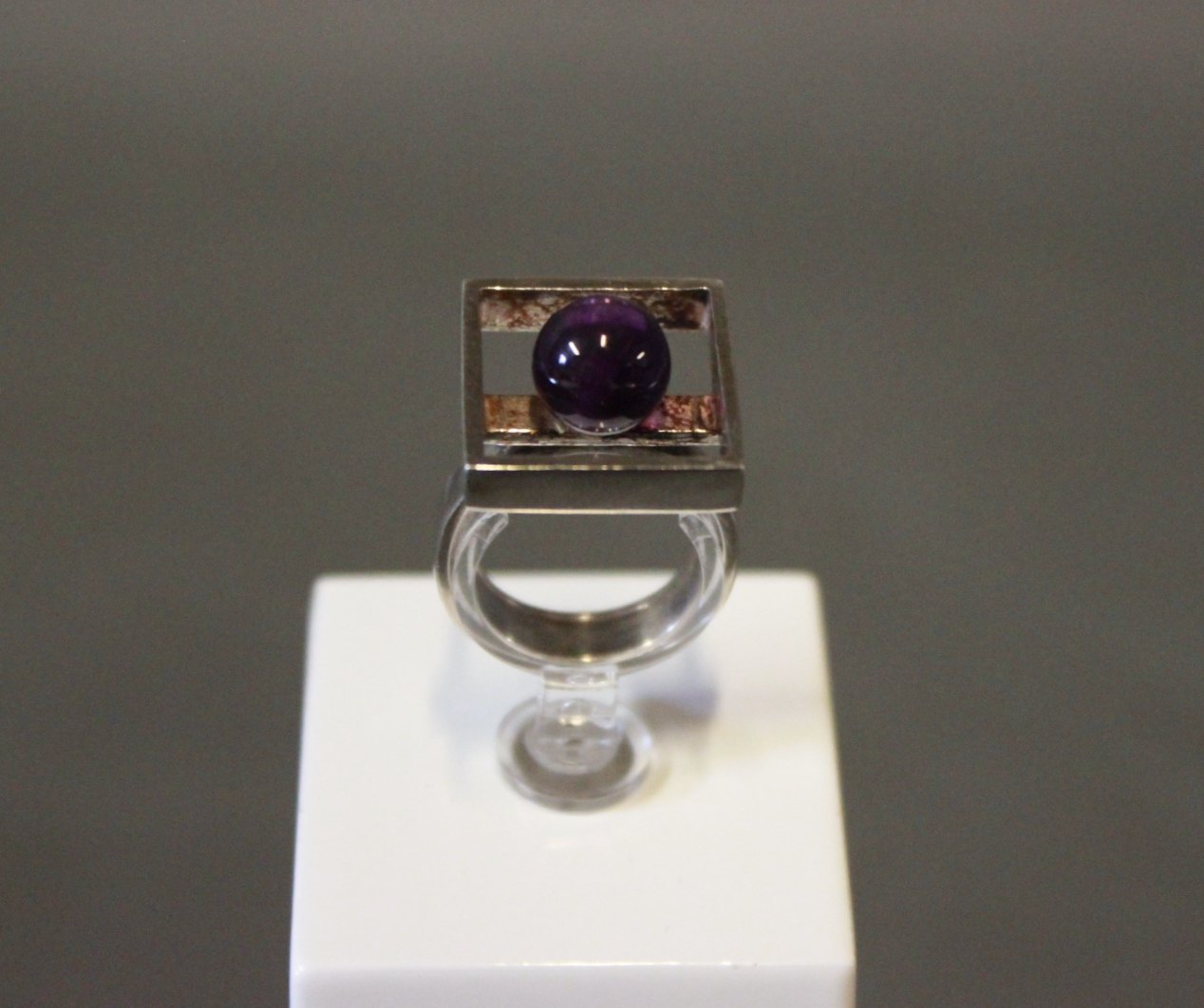 Firkantet ring i 925 sterling sølv med lilla sten, stemplet MPC af M.P.Christoffersen.