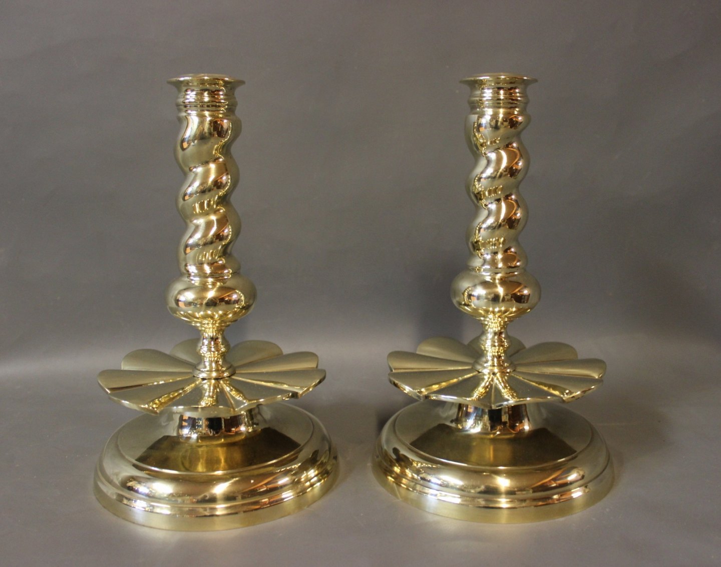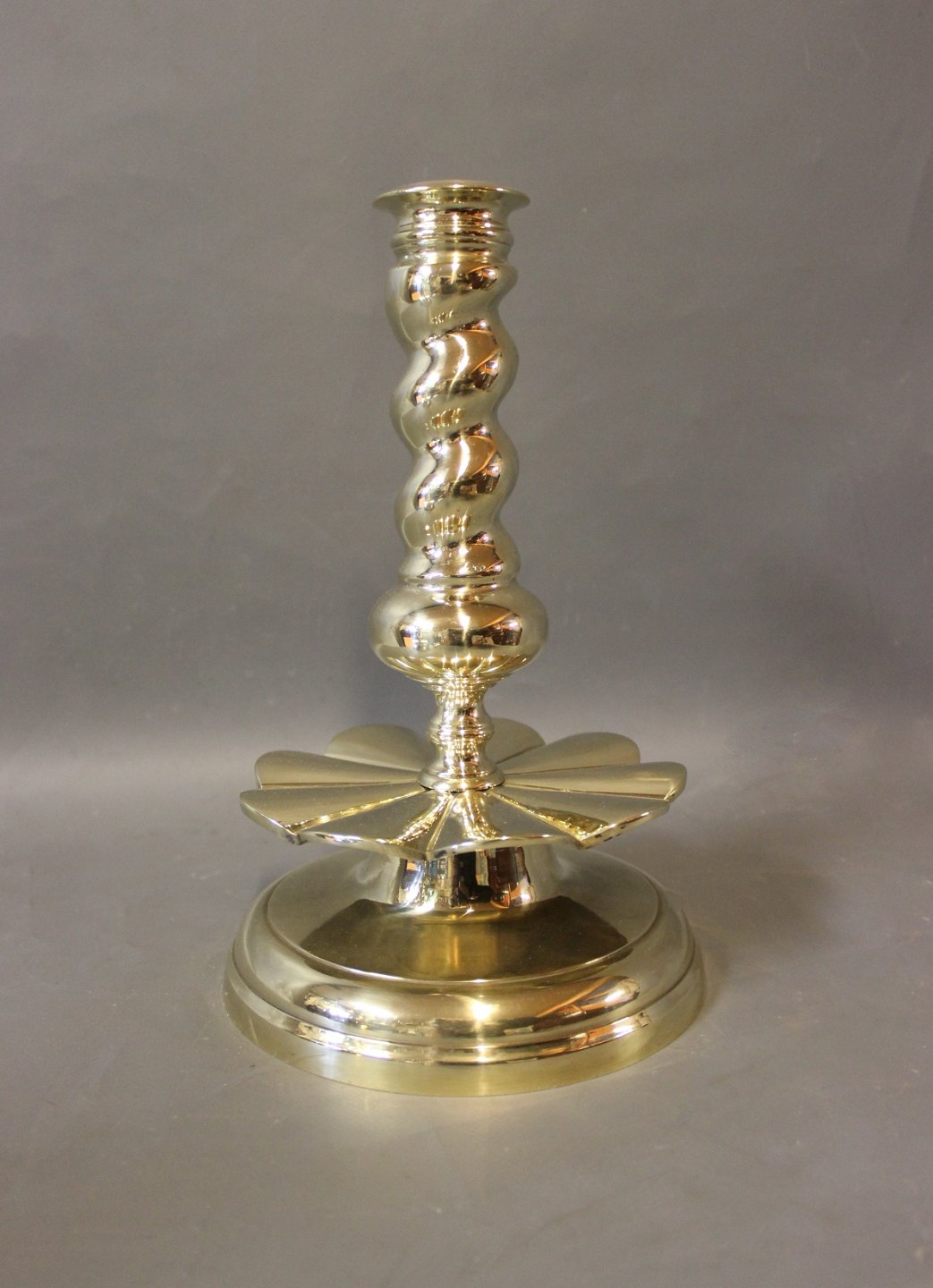 A pair of large brass candlesticks in the style baroque from around the 1840-1860s.