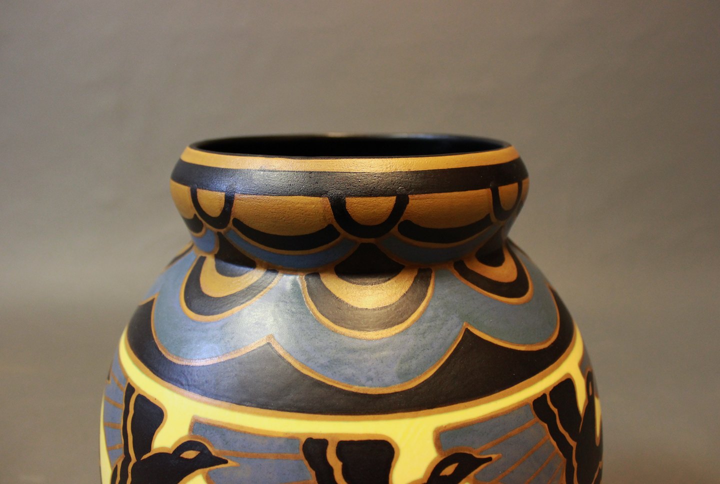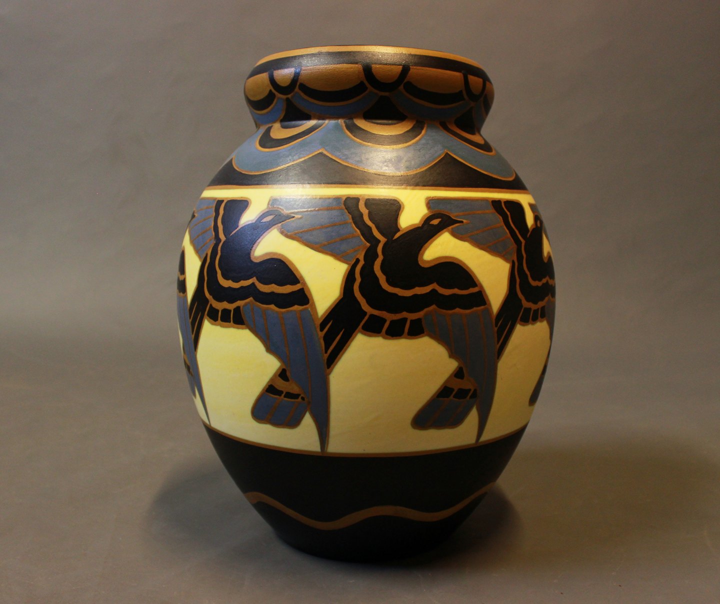 SolgtKeramik vase med fuglemotiver af Charles Catteau fra La Louviére Belgien i 1930erne. Vasen står i perfekt stand, med dekorationsnr.: D1366.