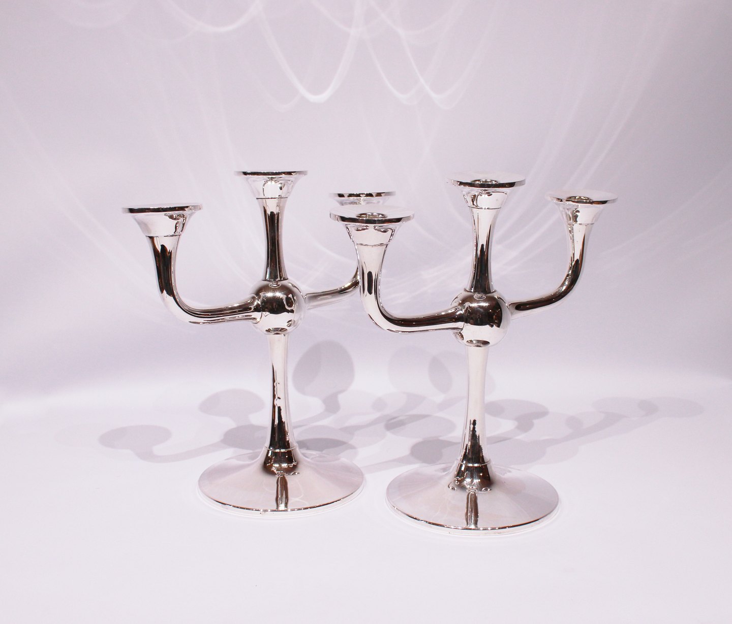 A pair of three armed candlesticks in 830 silver.