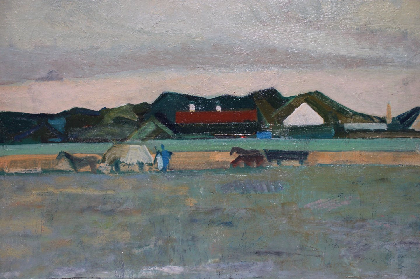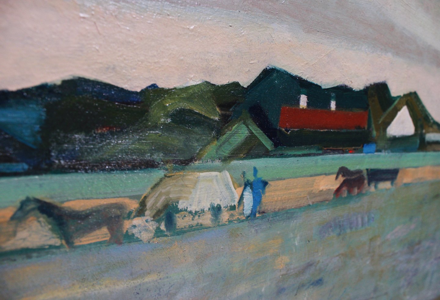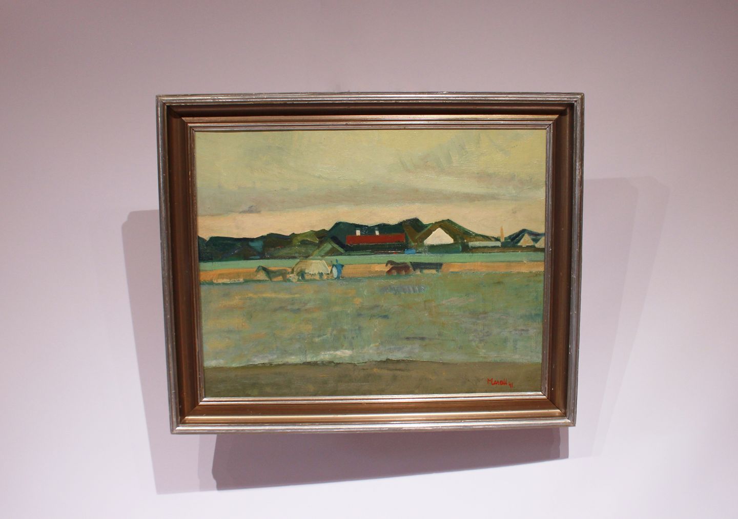 SoldOil painting with countryside motif, signed Marcell 41 by Marcell Wernegreen Jensen. The painting is in great vintage condition with patinated frame.