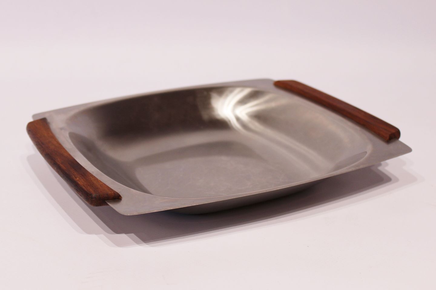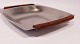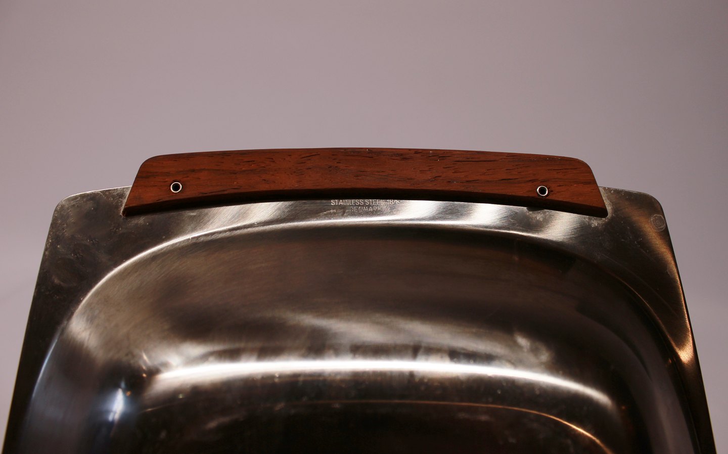 Serveringsfad i rustfrit stål med teak håndtag af dansk design fra 1960erne.