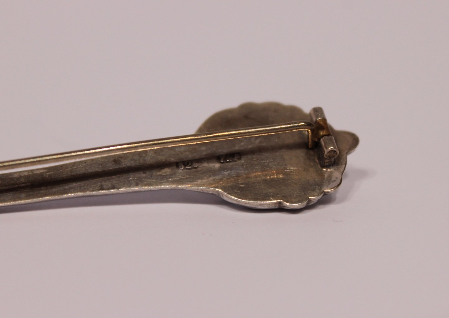 Simpel brooch with small blue stone, in 826 silver, stamped P&P by Petersen & Prahl.