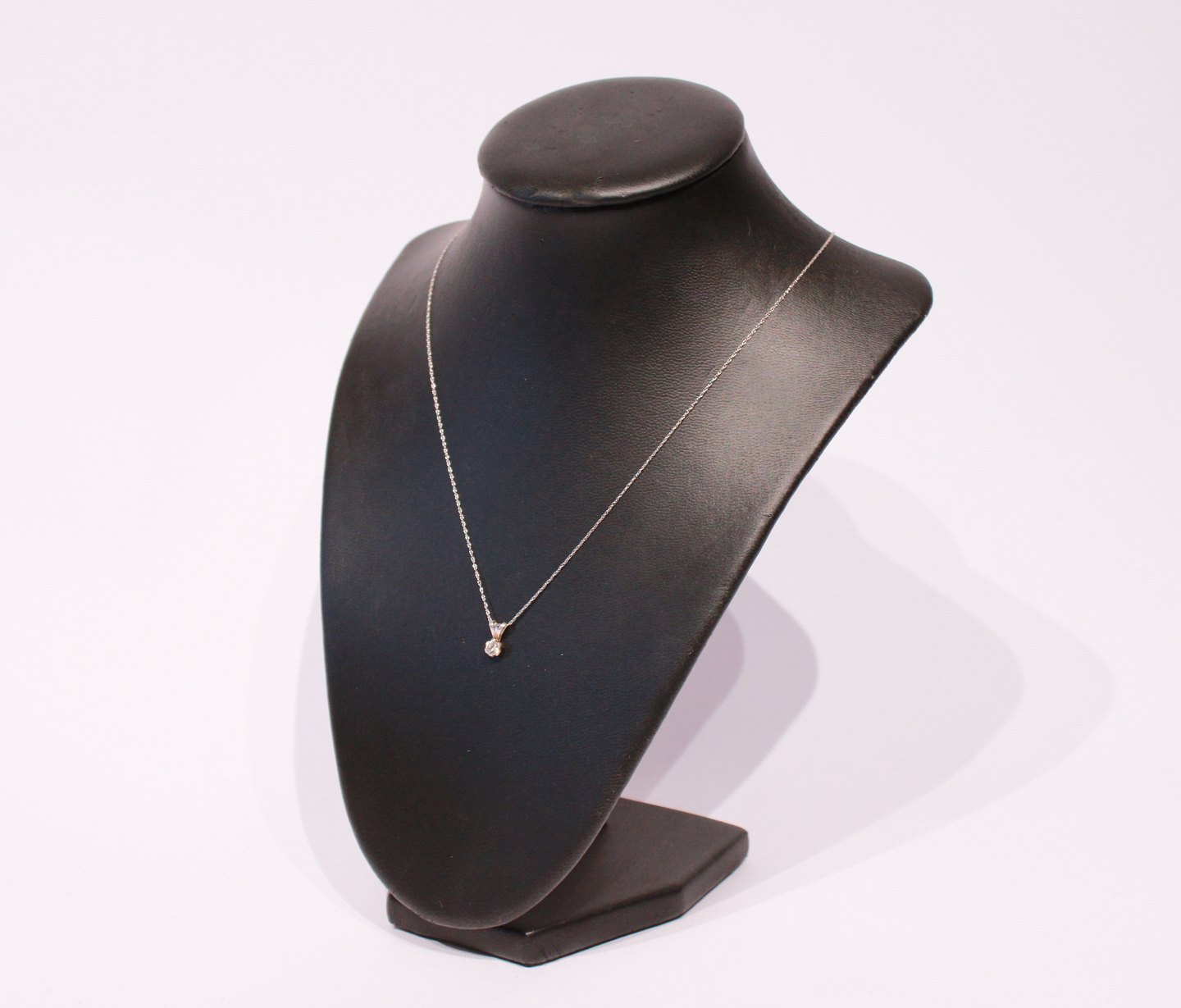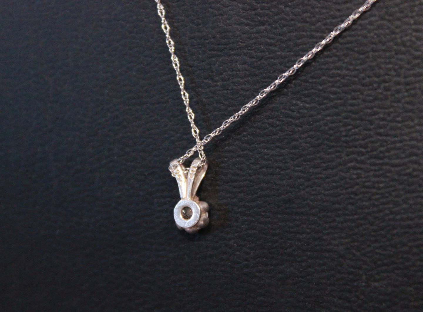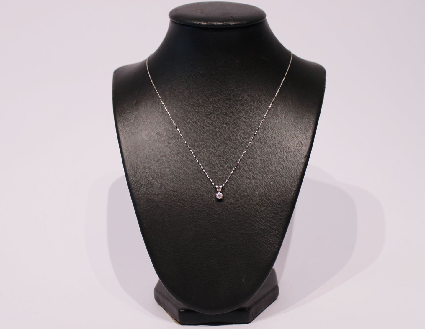 Kæde i 10 kt. hvidguld, stemplet AU, med vedhæng af 925 sterling sølv og zirkon.