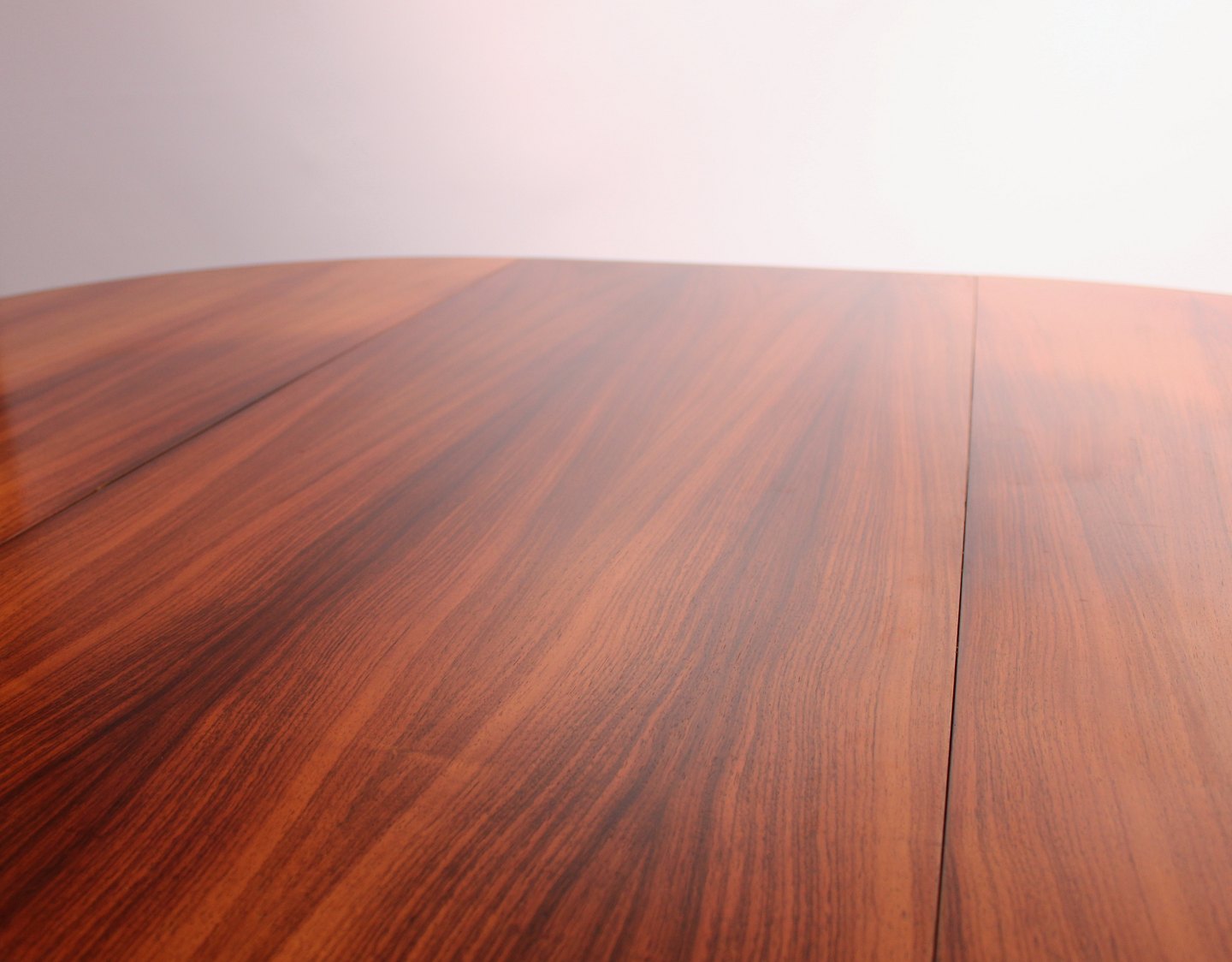 Round dining table in rosewood with 2 extension leaves of danish design from Vejle furniture factory, 1960s.