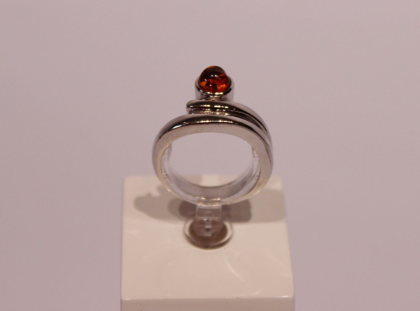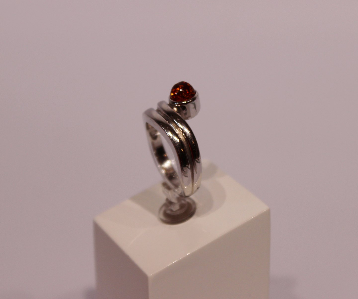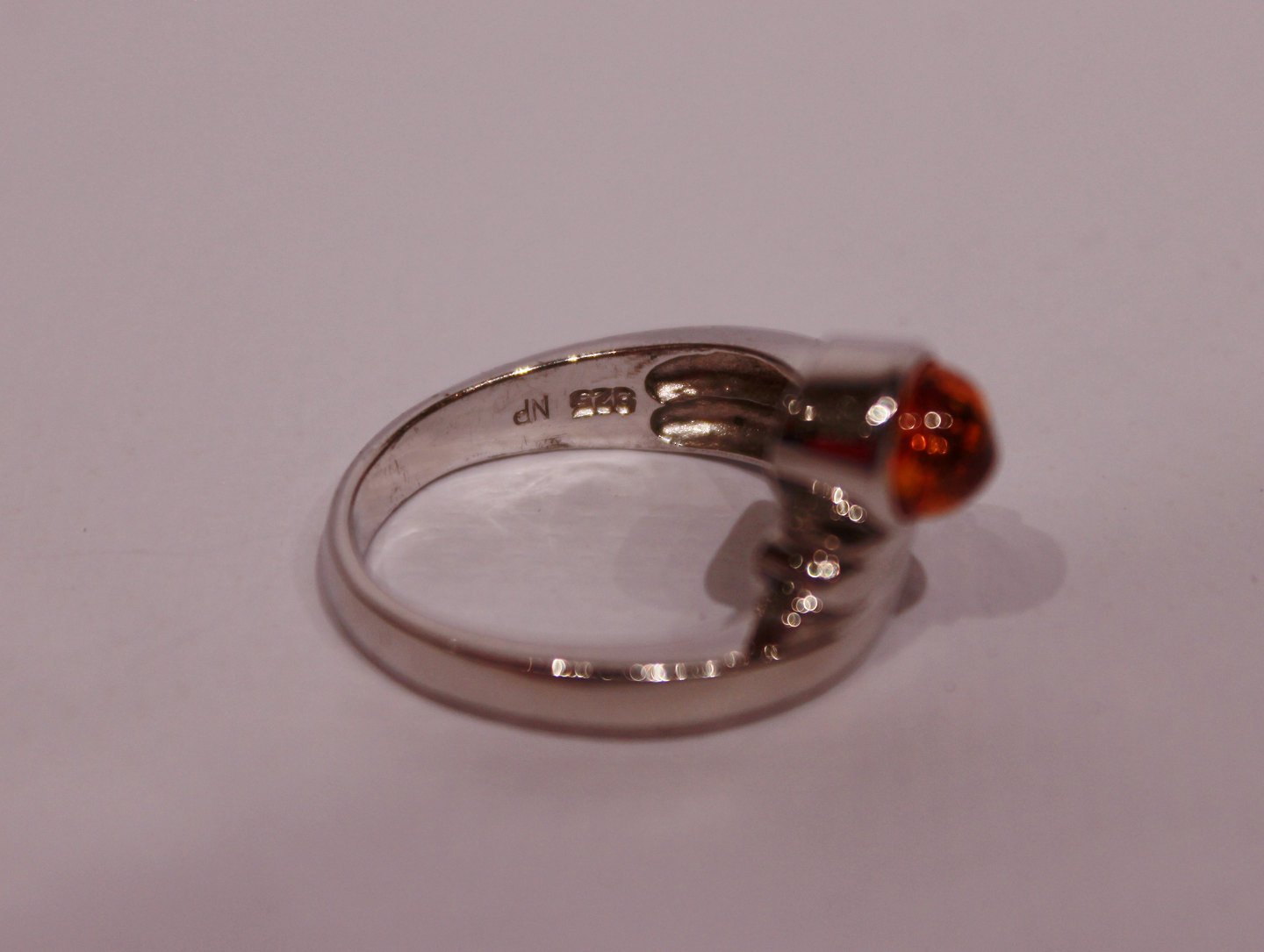 Ring med rav sten, stemplet NP og af 925 sterling sølv.