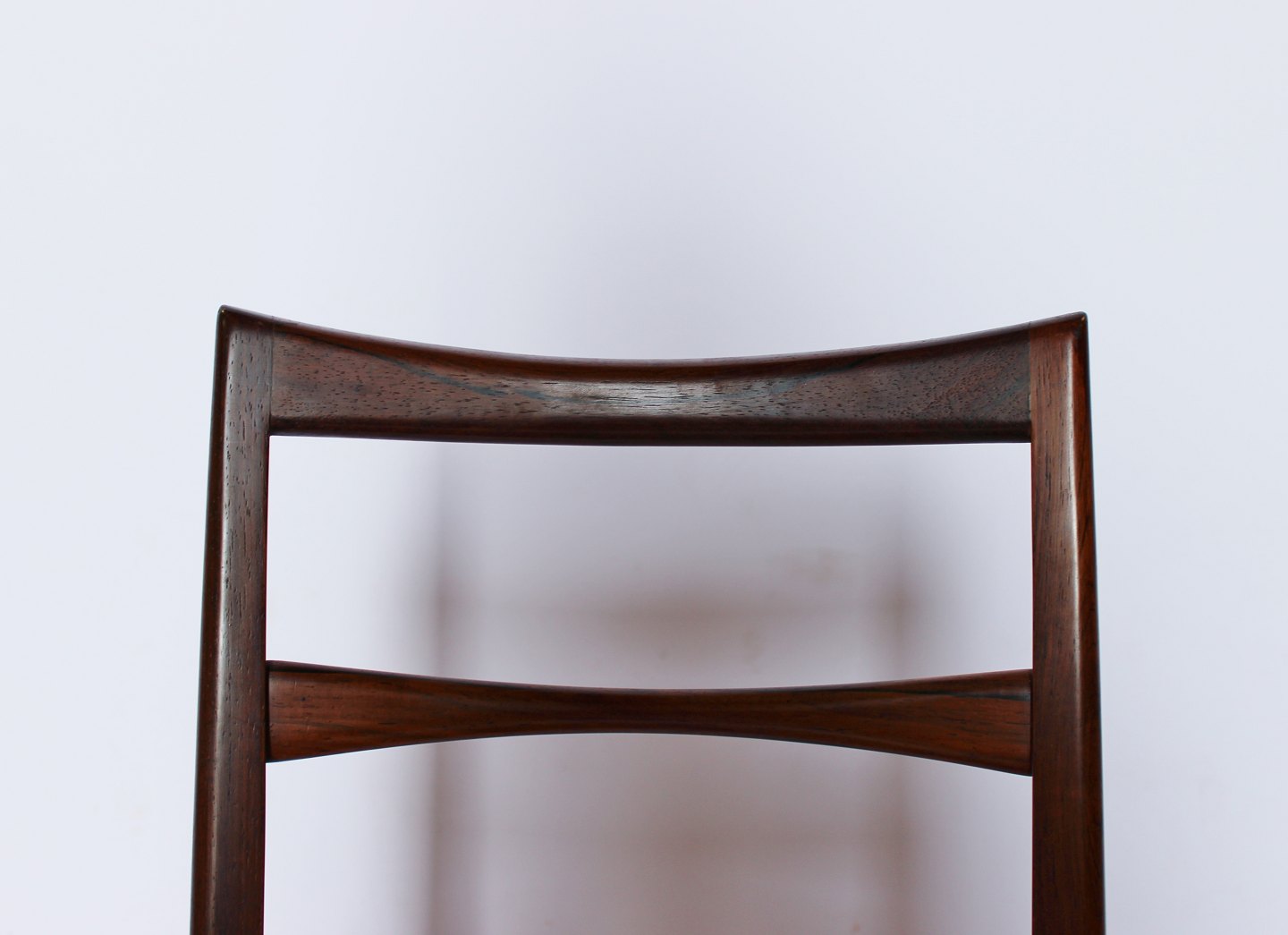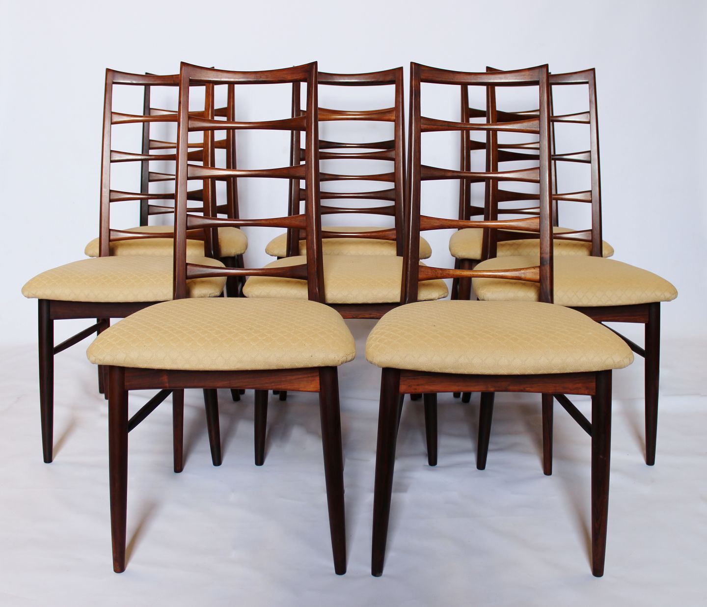 SolgtSæt af 8 spisestuestole, model Lis, i palisander designet af Niels Koefoed i 1961 og fremstillet af Koefoed Møbelfabrik, Hornslet i 1960erne.
