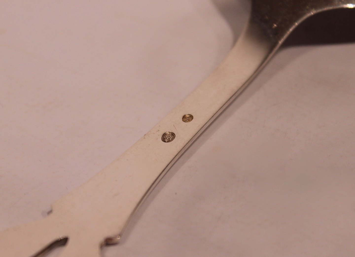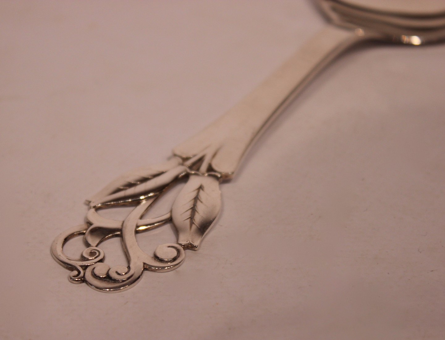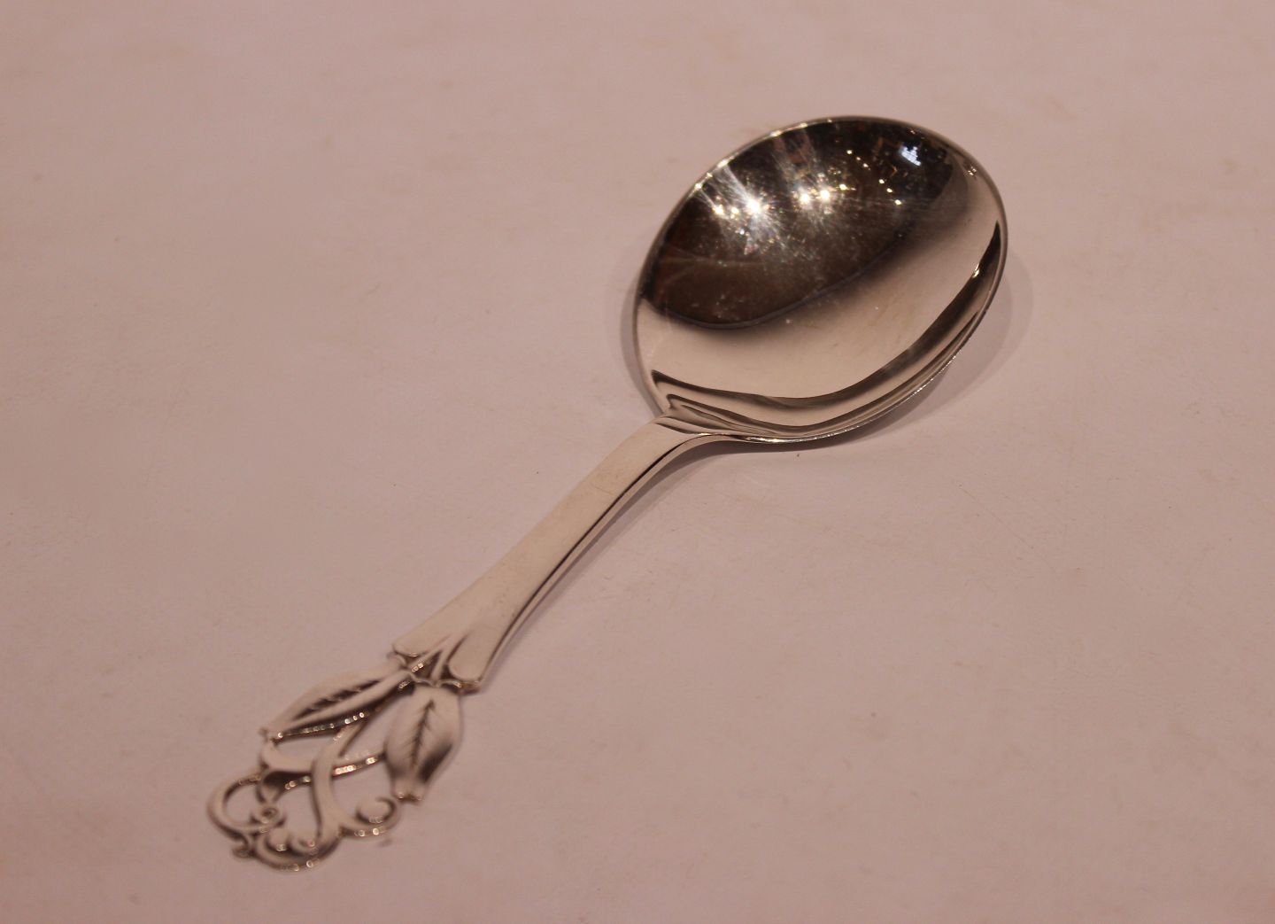 SolgtServeringsske dekoreret med blade af tretårnet sølv.