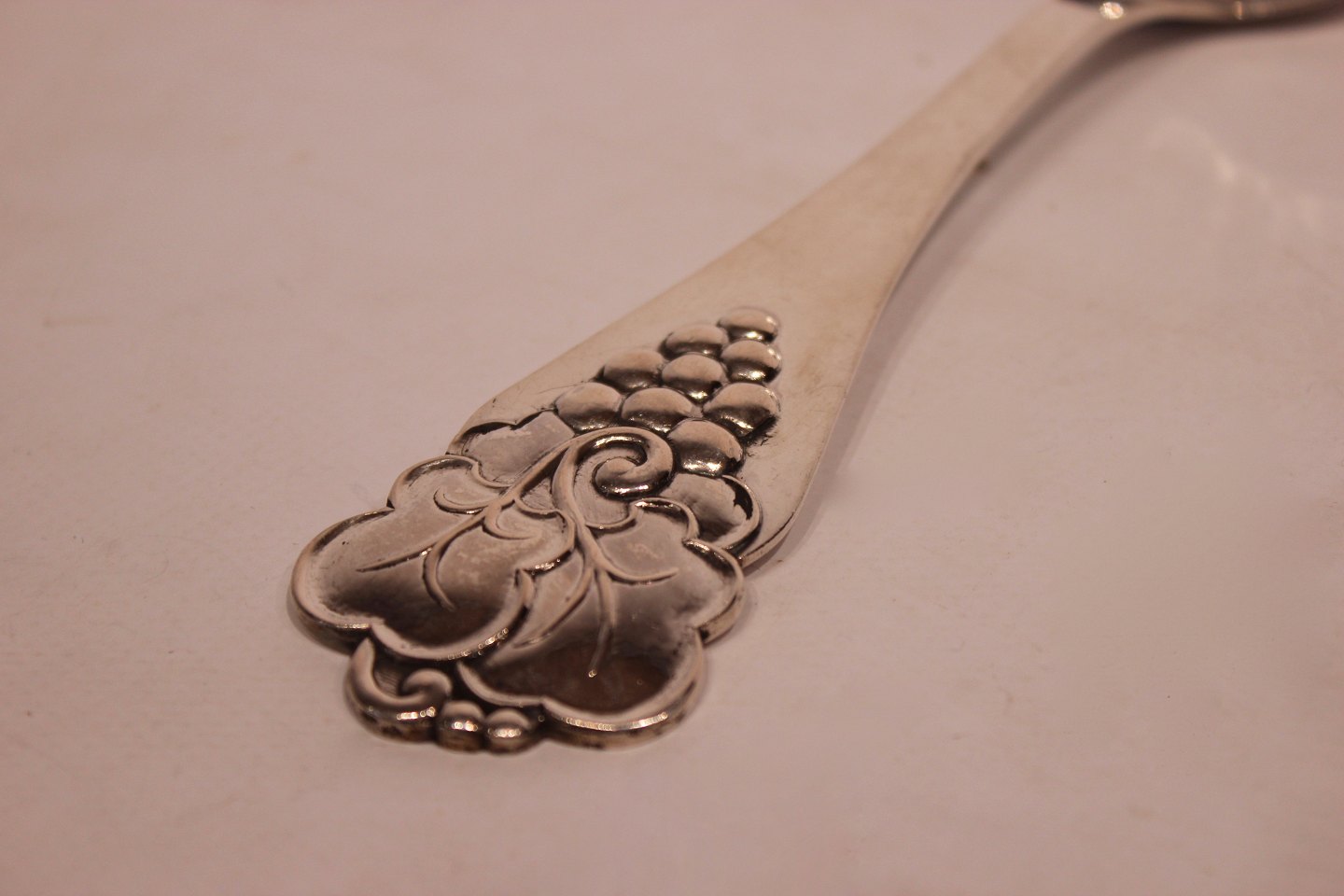 Serveringsske dekoreret med drue klaser af tretårnet sølv.