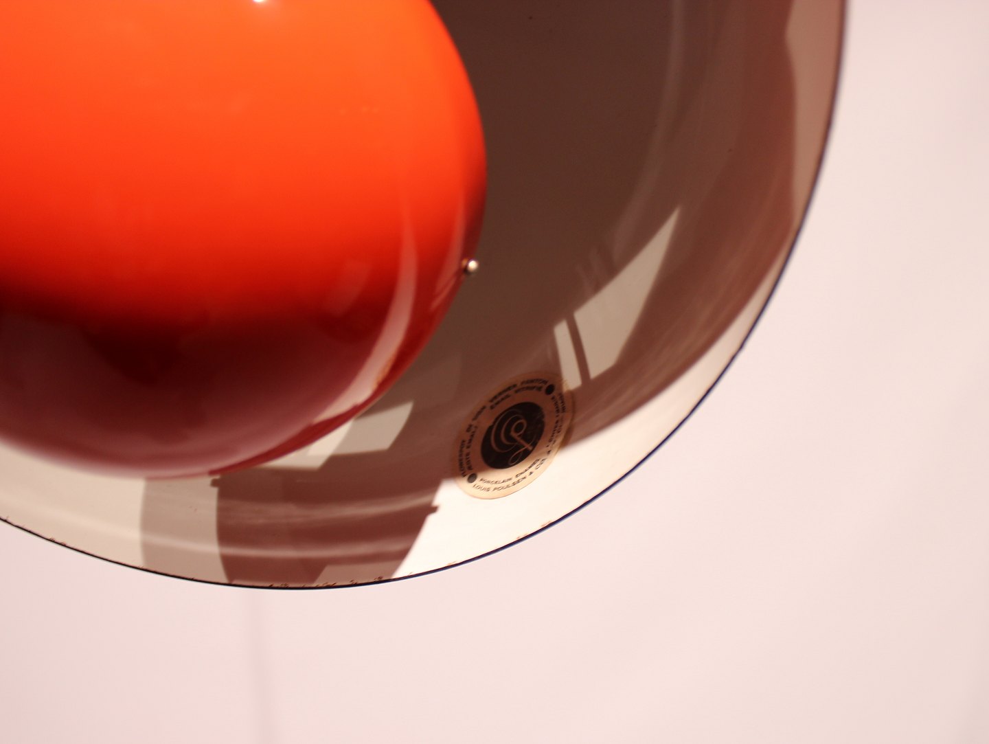 A pair of Flowerpot, model VP1, pendants in orange designed by Verner Panton in 1968 and manufactured in the 1970s.