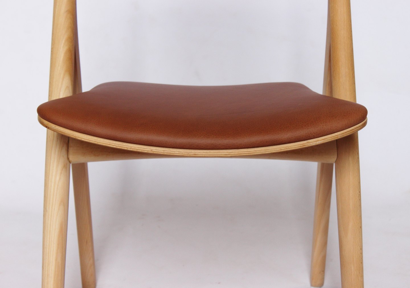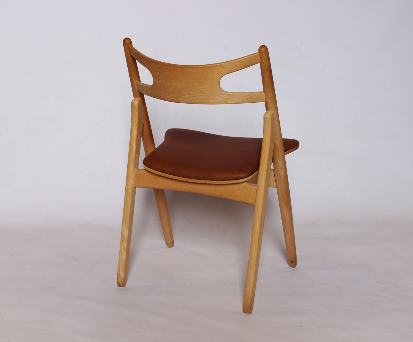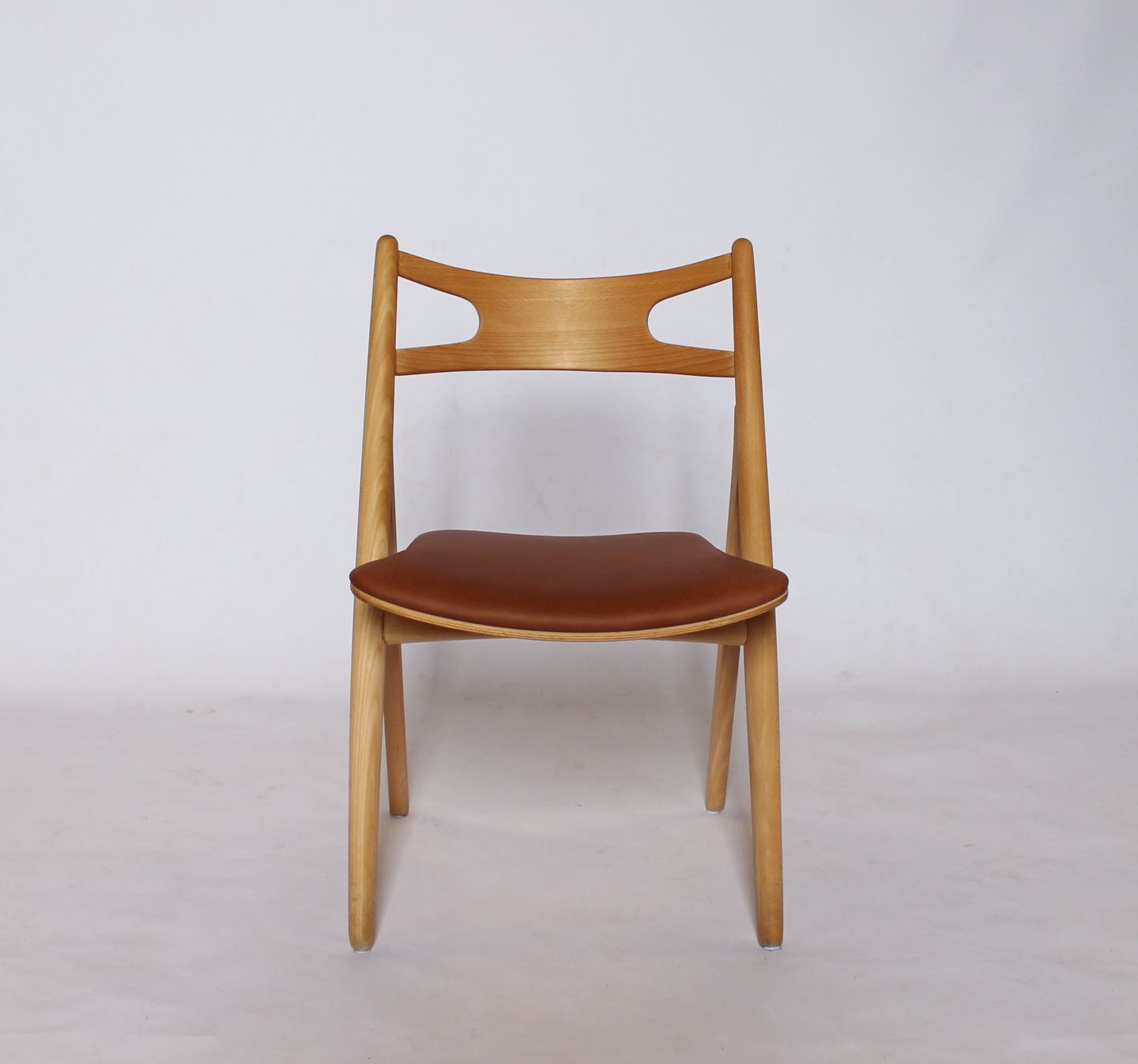 SoldA Sawbuck chair, model CH29, designed by Hans J. Wegner in 1952 and manufactured by Carl Hansen & Son in the 1970s. The chair is made of soap treated beech and with seat of cognac elegance leather.