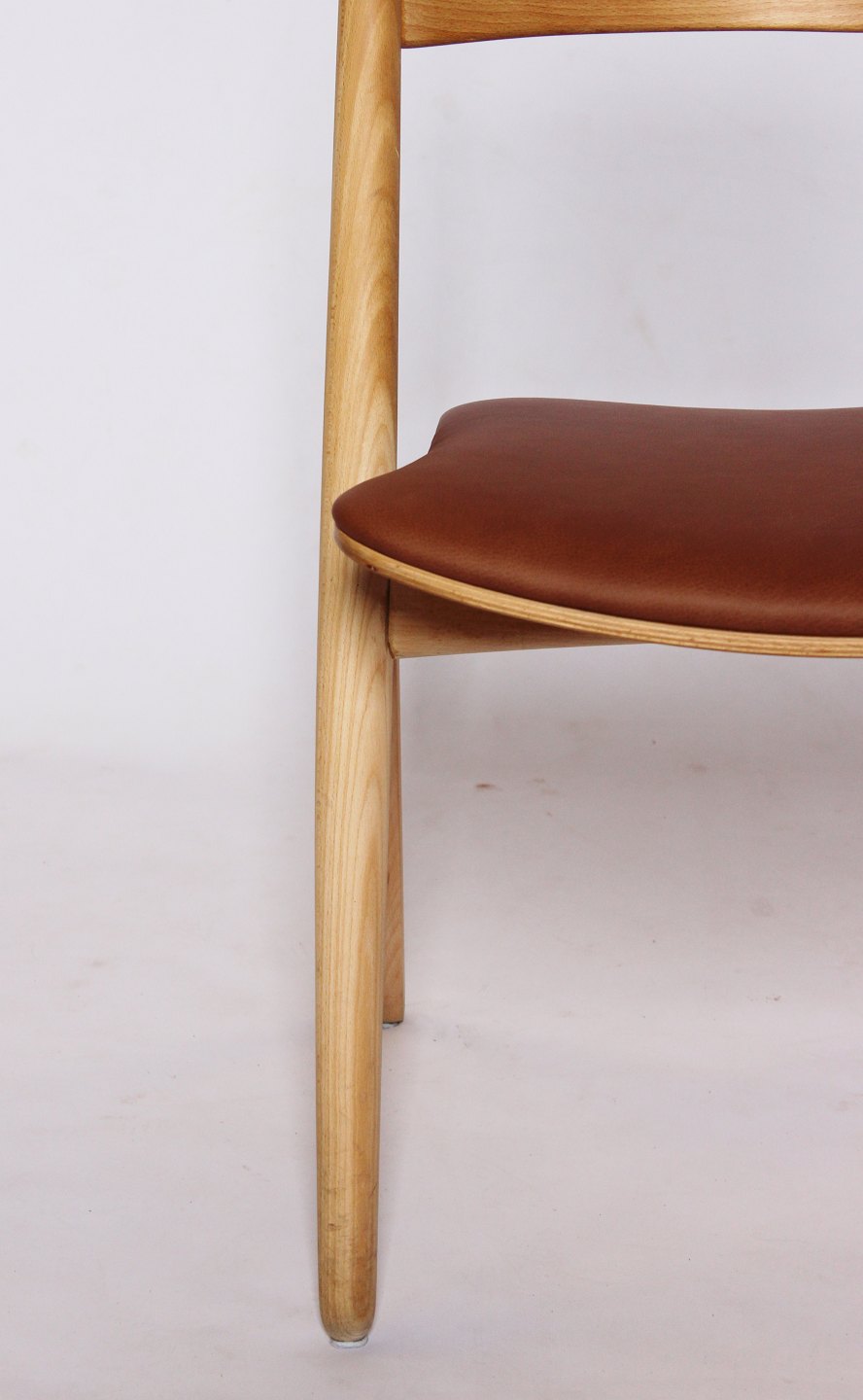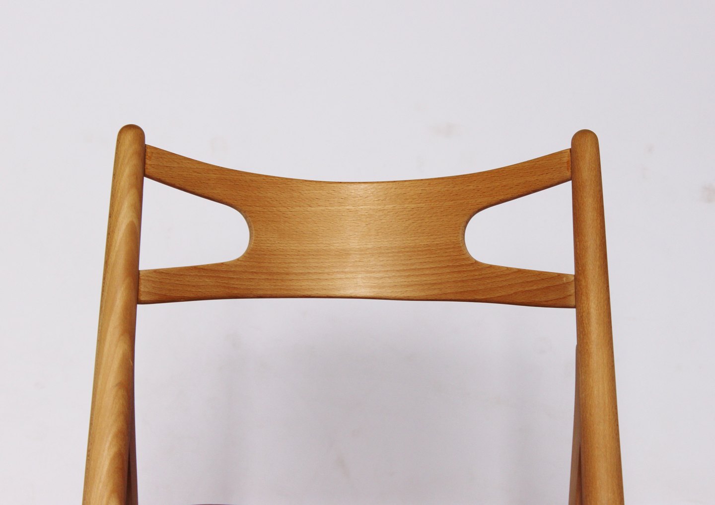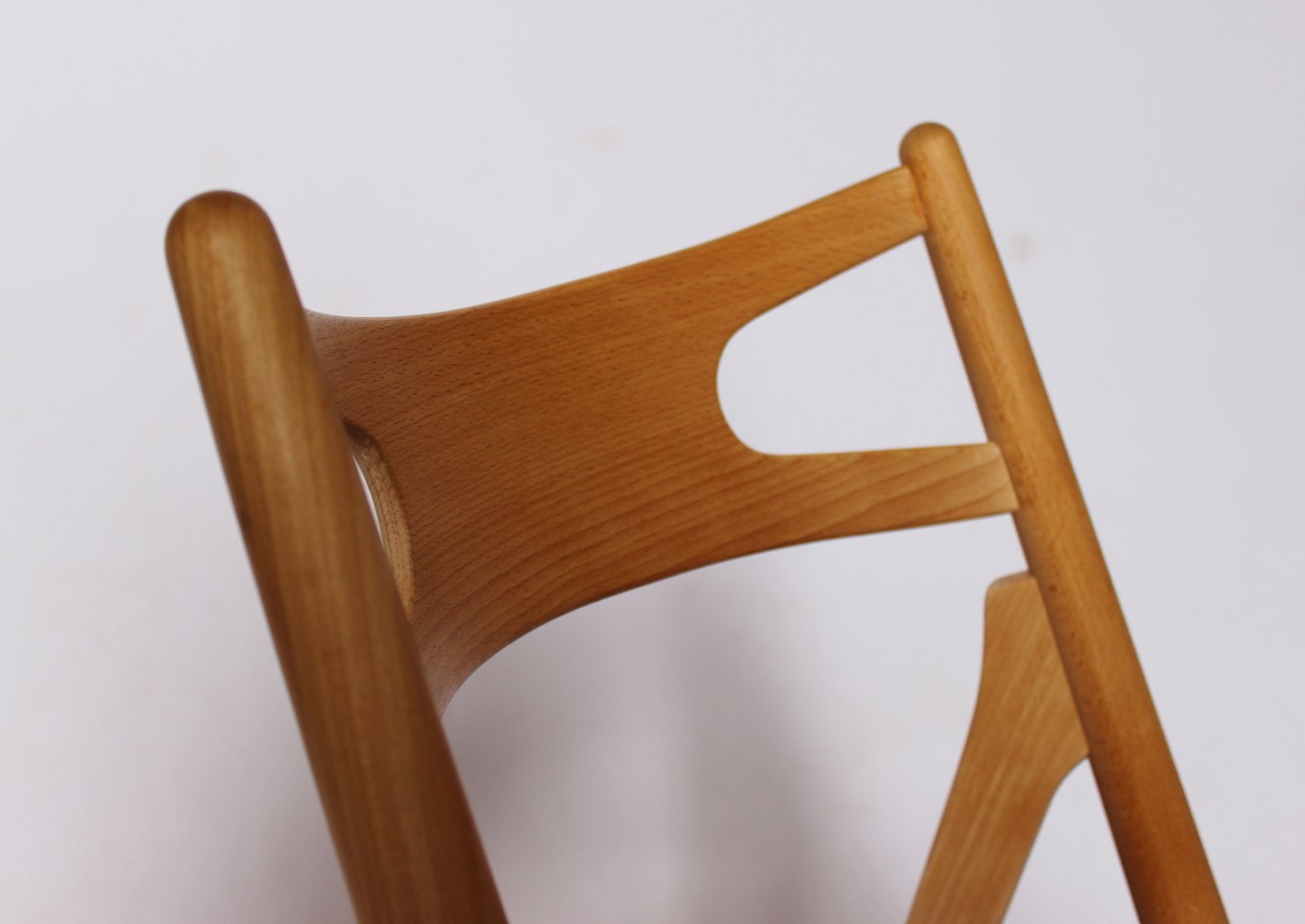 SoldA Sawbuck chair, model CH29, designed by Hans J. Wegner in 1952 and manufactured by Carl Hansen & Son in the 1970s. The chair is made of soap treated beech and with seat of cognac elegance leather.
