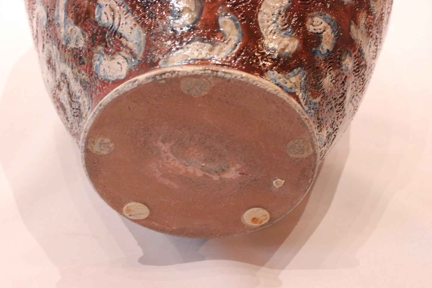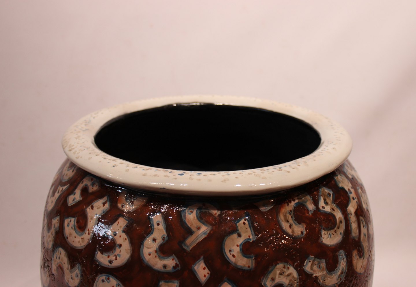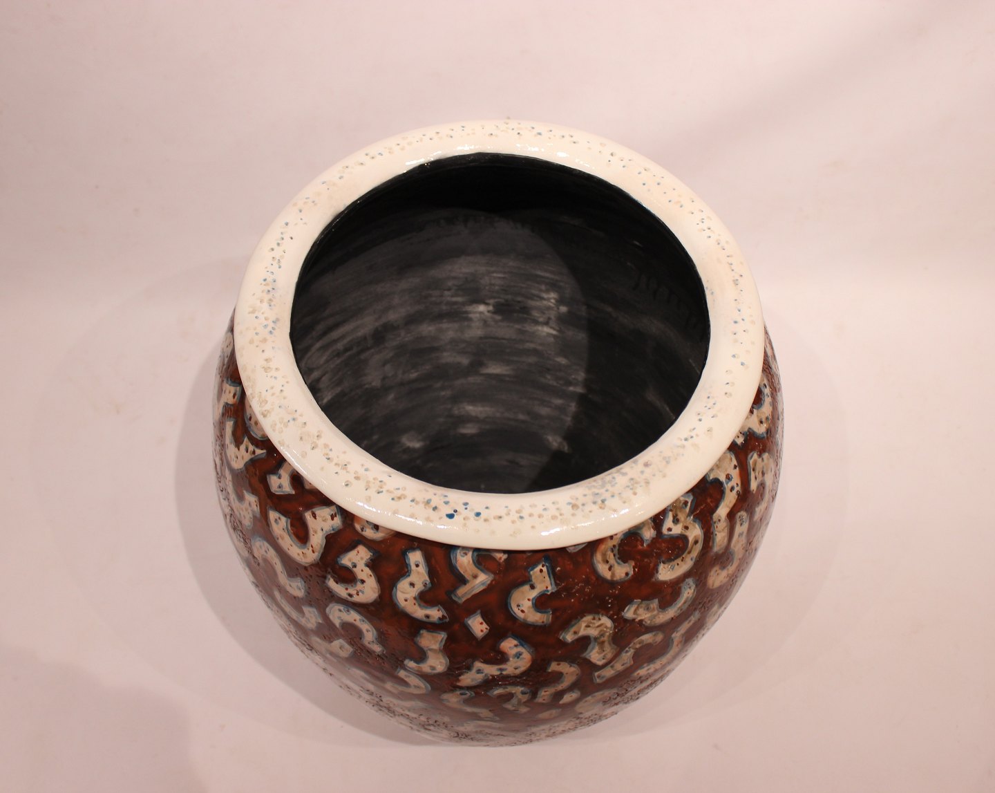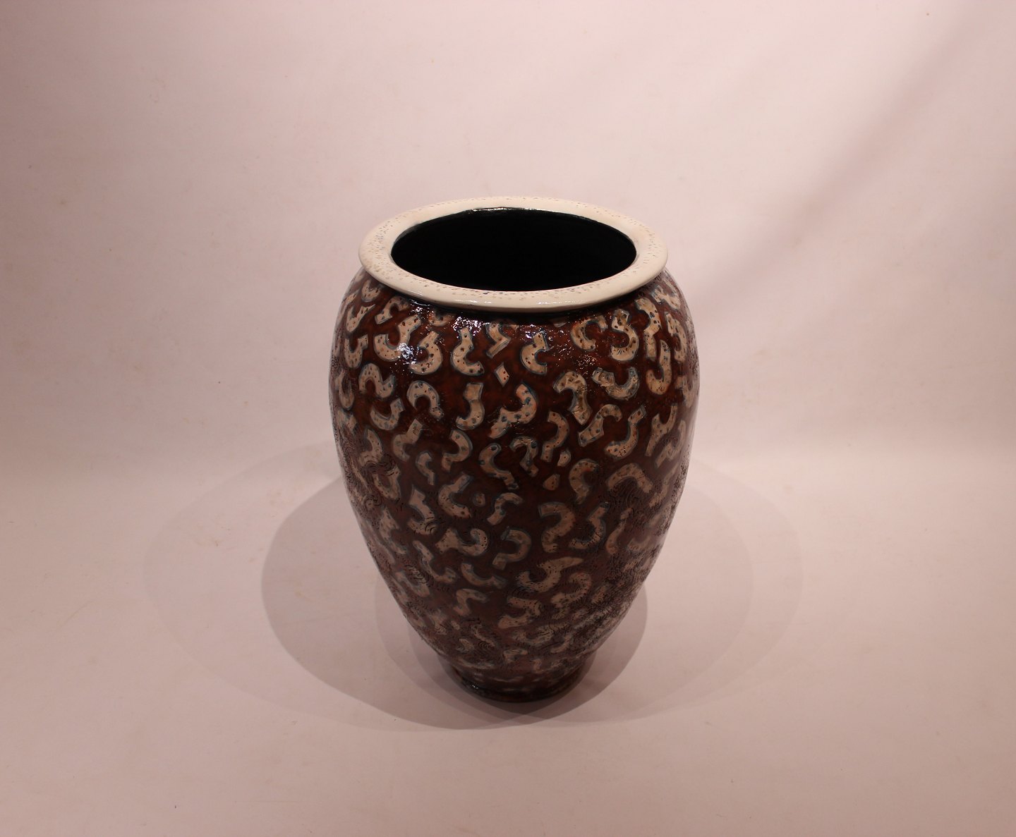 SolgtStor stentøj gulvvase af keramikeren Per Weiss fra 1980erne. Vasen er dekoreret i mørke brun og hvid glasering, samt i flot brugt stand.