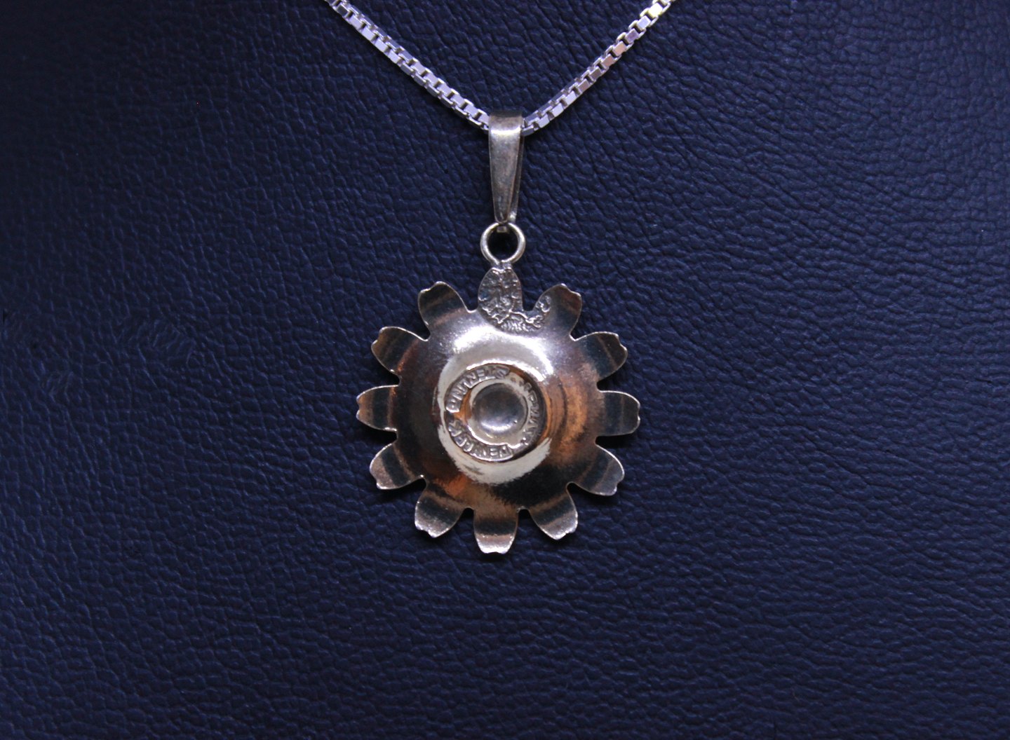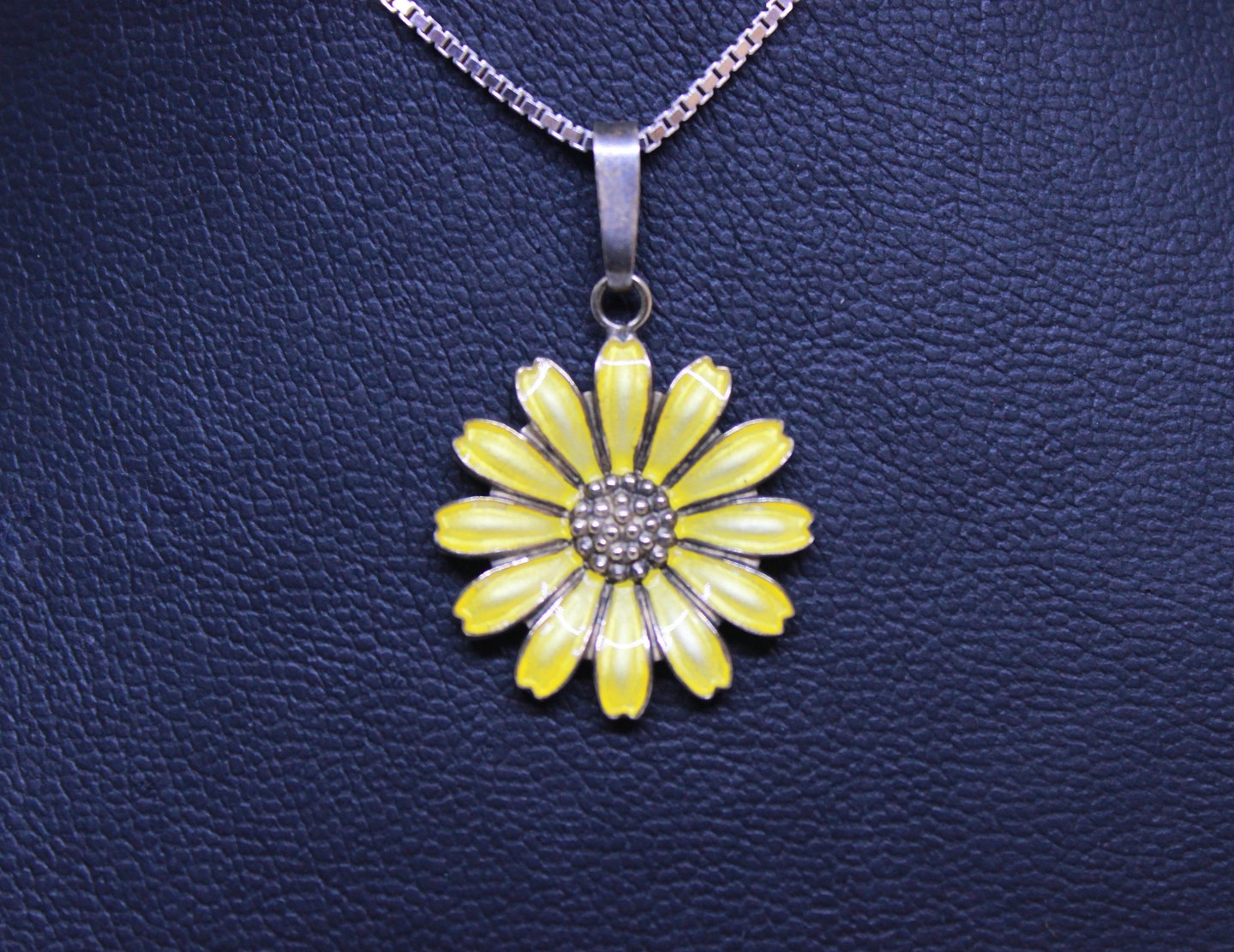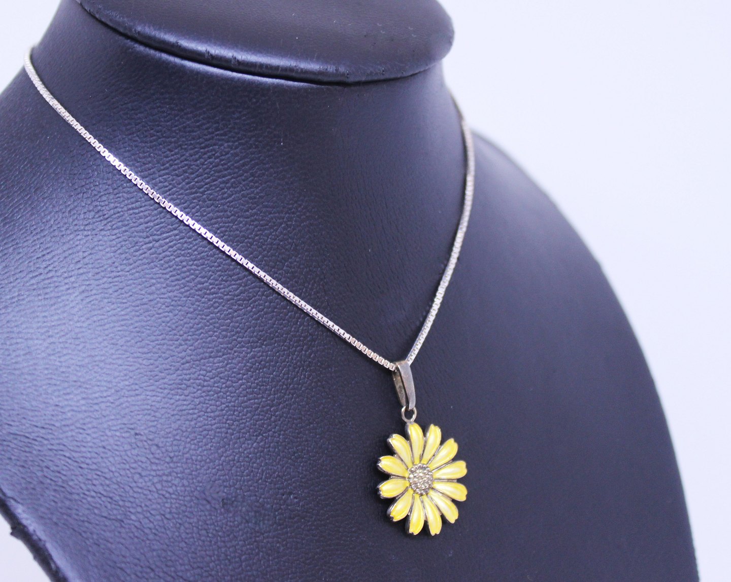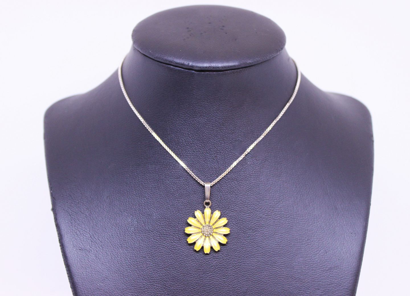 SoldDaisy pendant of 925 sterling silver and light yellow enamel.