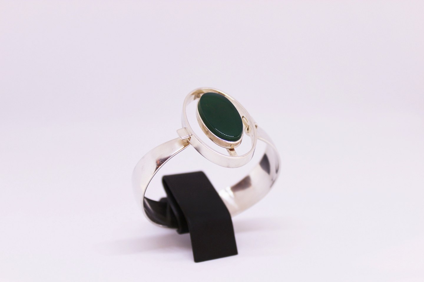 Armring af 925 sterling sølv dekoreret med stor jade sten af N.E. From. Smykket er i flot brugt stand.