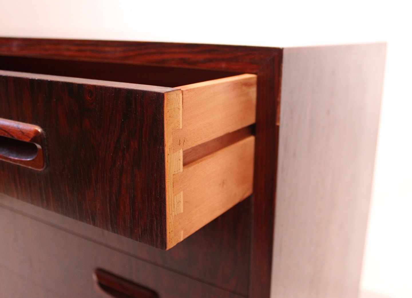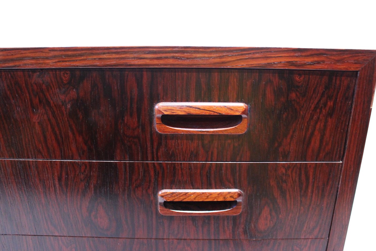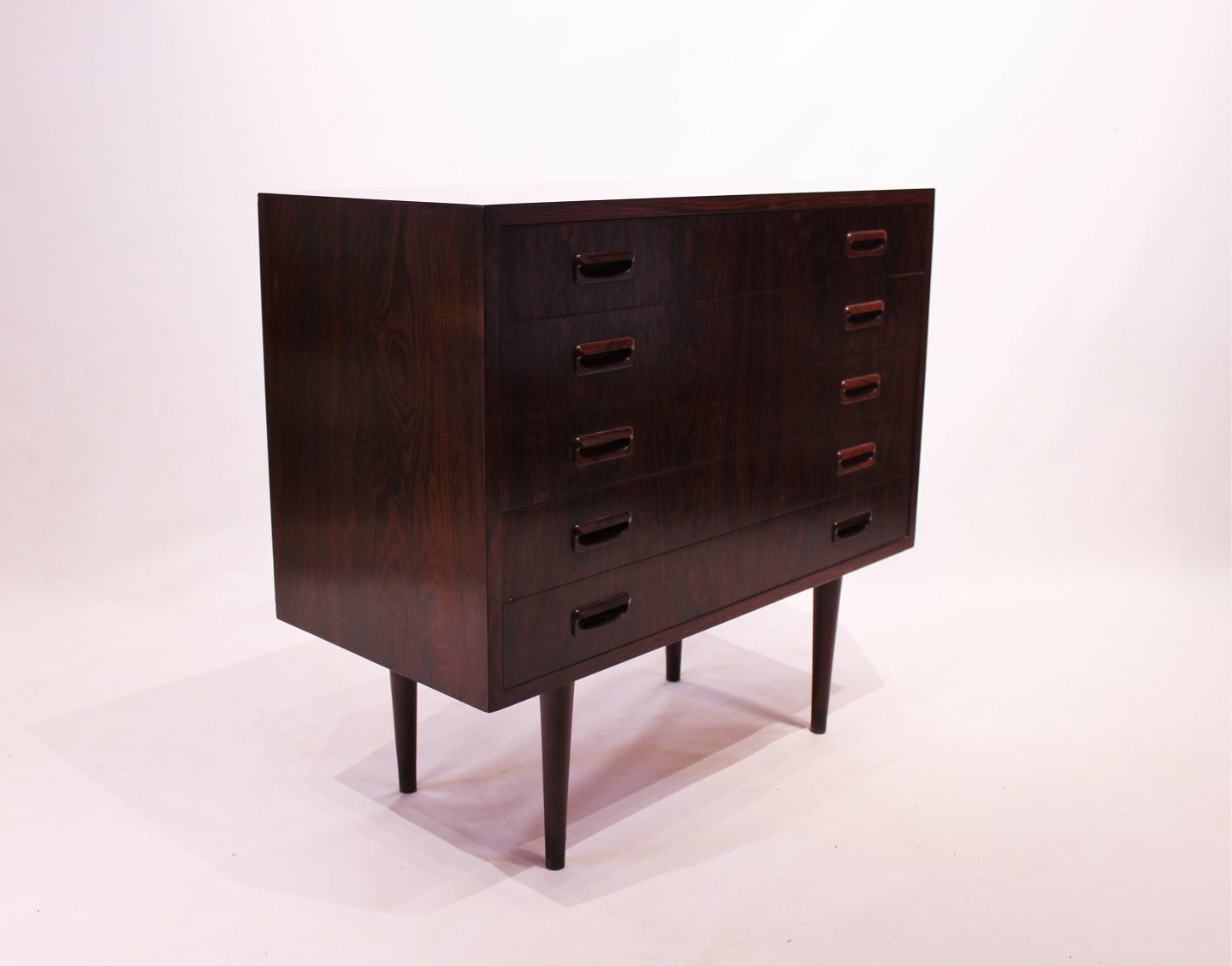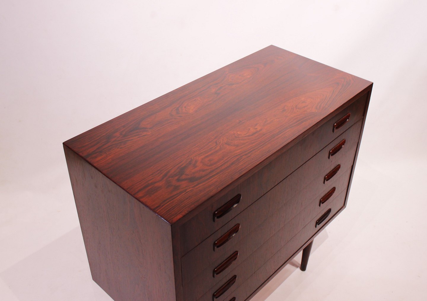 SolgtLille kommode af palisander med fem skuffer af dansk design fra 1960erne. Kommoden er i flot brugt stand.