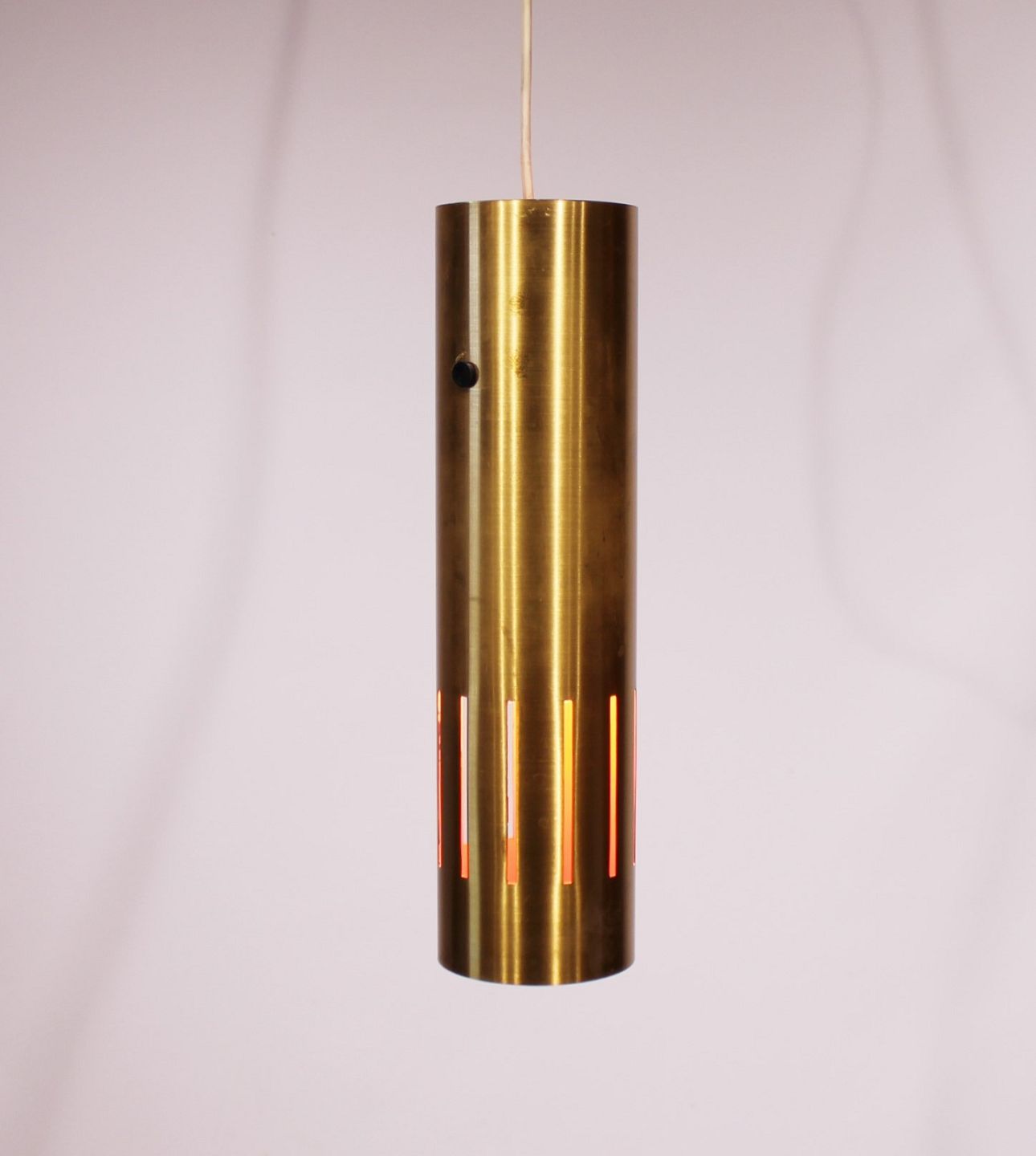 SoldVintage ceiling pendant in brass and orange laqcuer interior of danish design from the 1970s. The lamp is in great vintage condition.