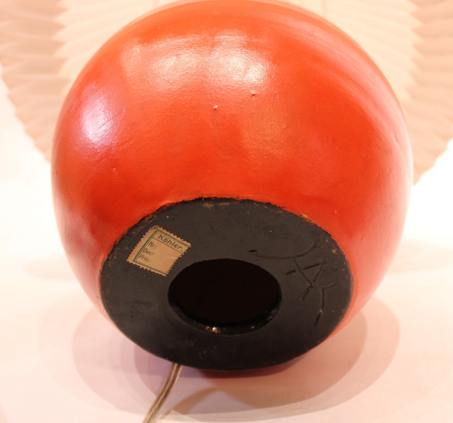 Keramik bordlampe med orange glasur af Herman A. Kähler.
