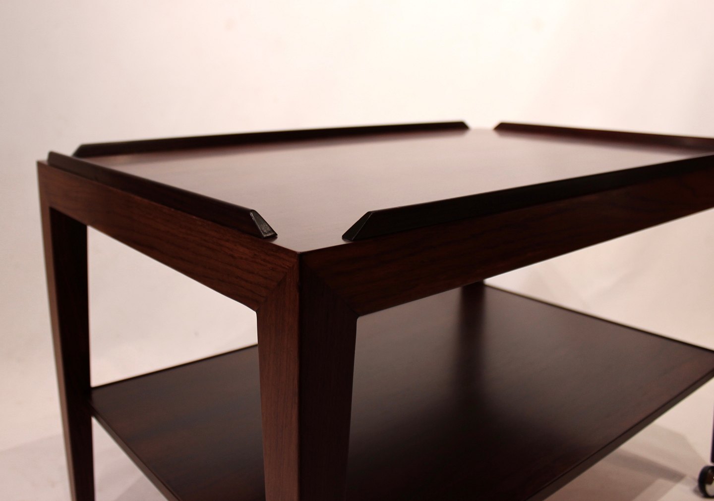 Table on wheels in rosewood by Severin Hansen and Haslev Furniture factory from the 1960s.