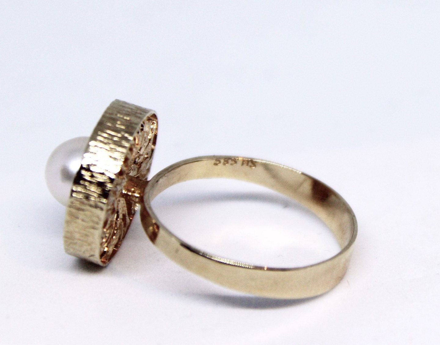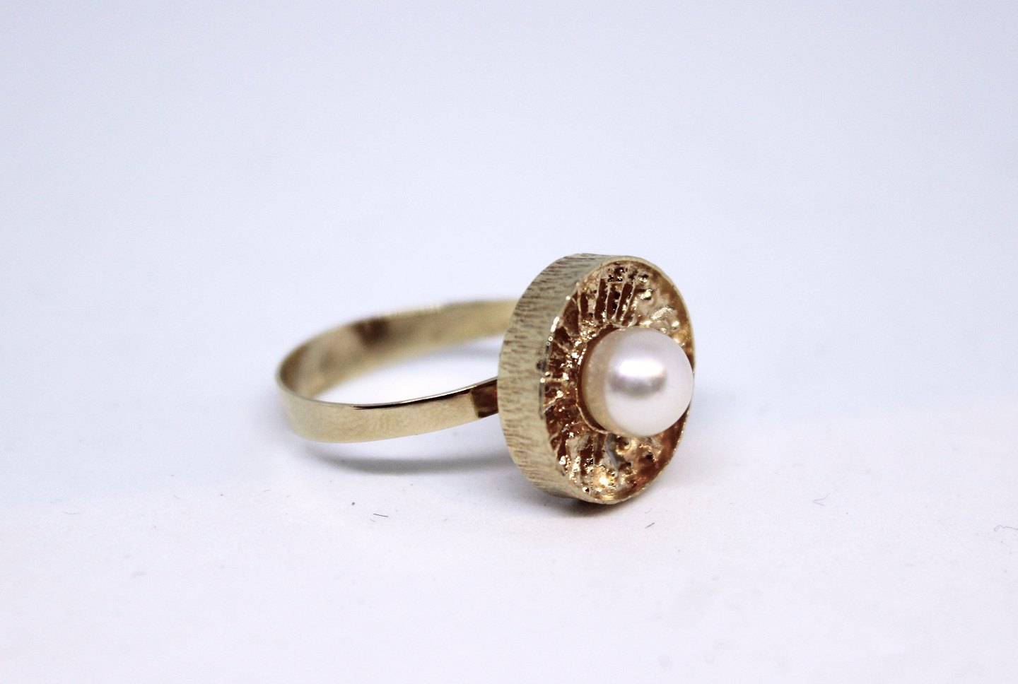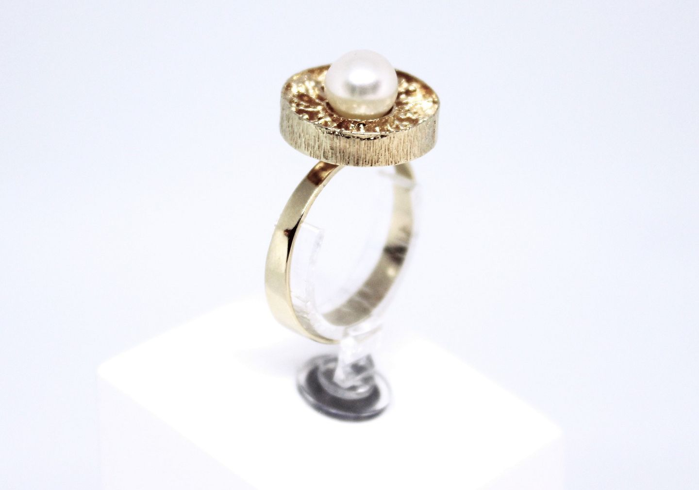 SolgtRing af 14 karat guld og dekoreret med perle.