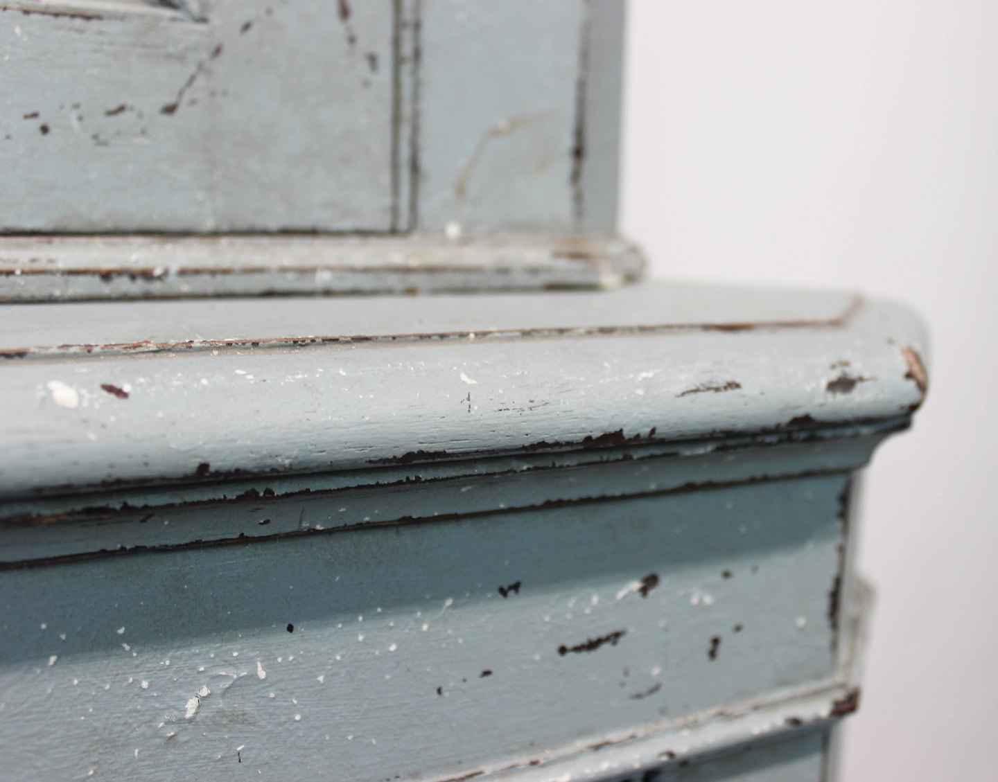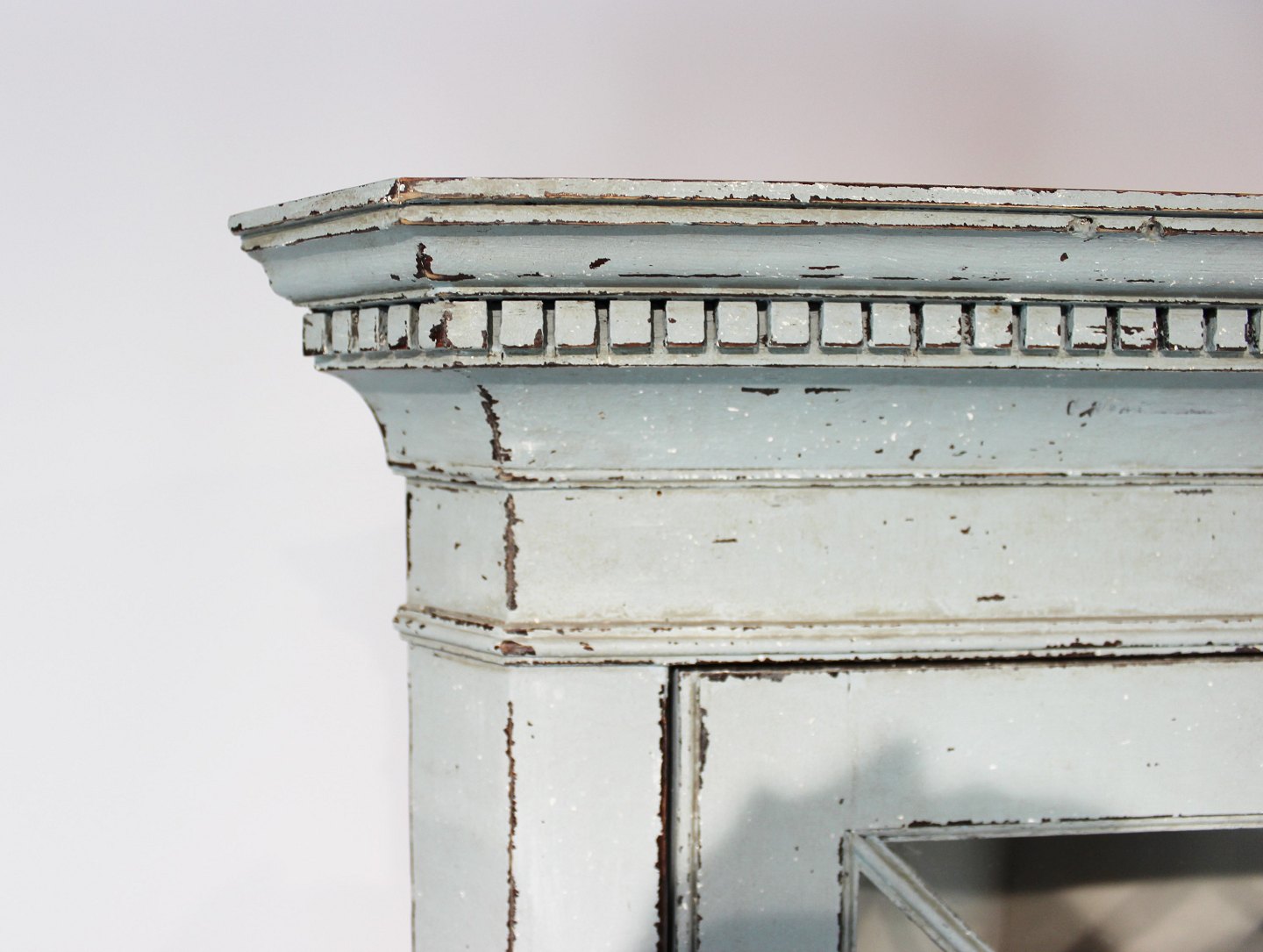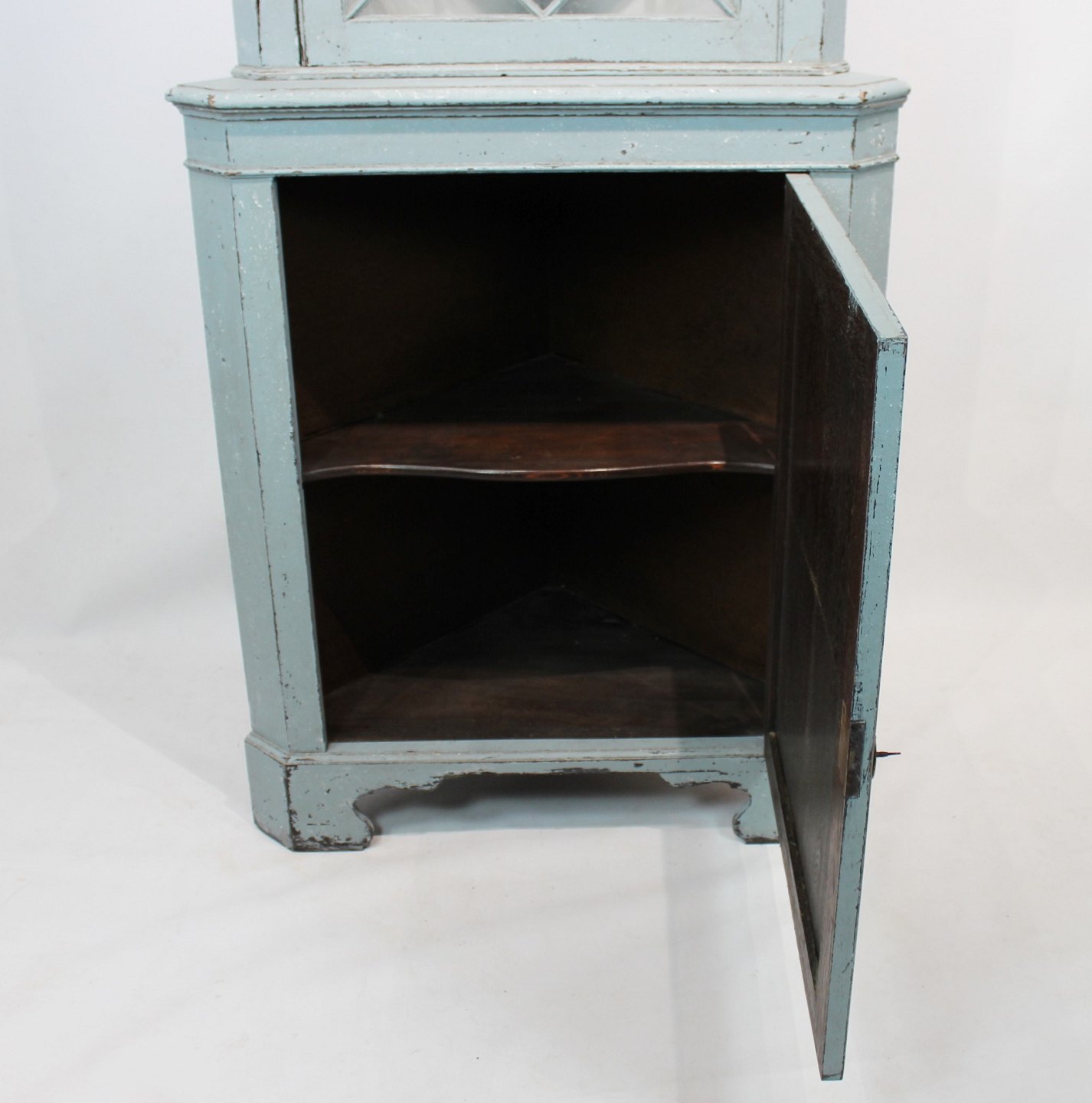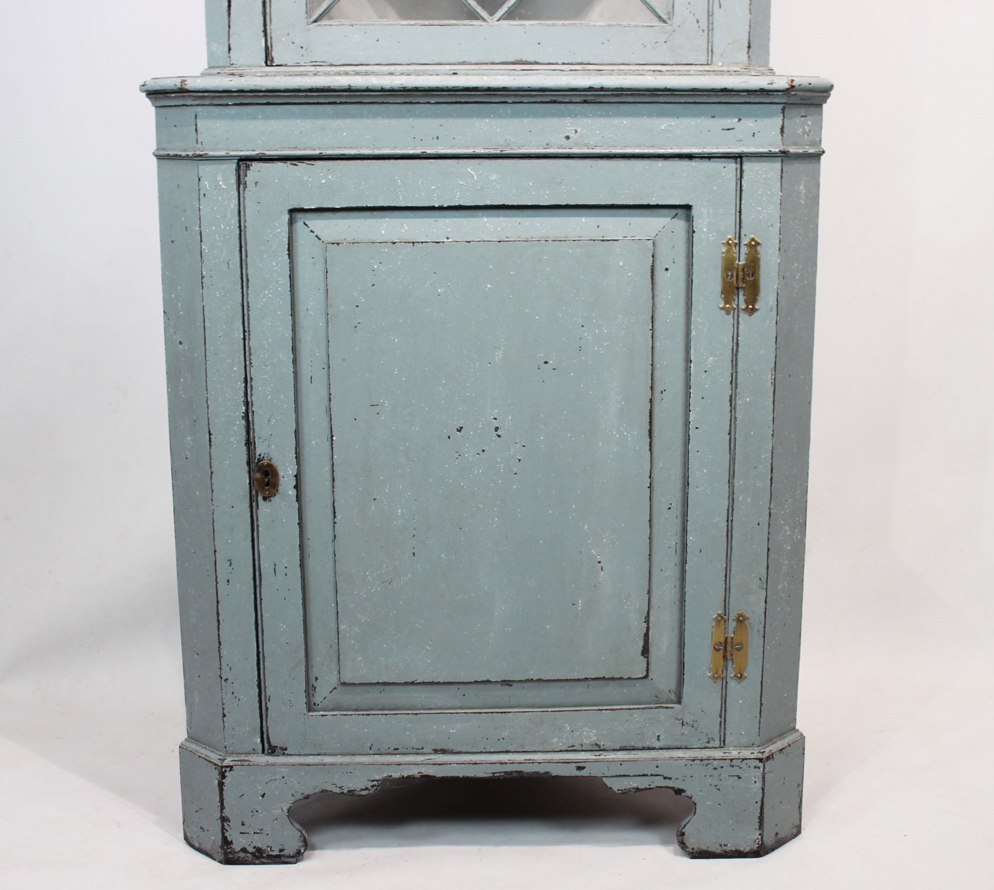 SolgtStort blå malet gustaviansk hjørneskab fra 1880erne, i flot antik stand.