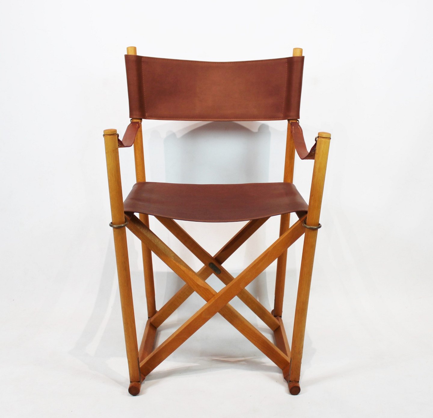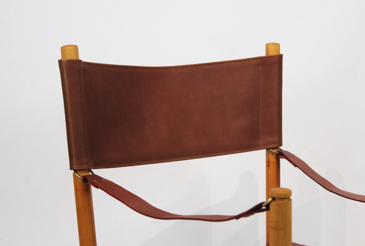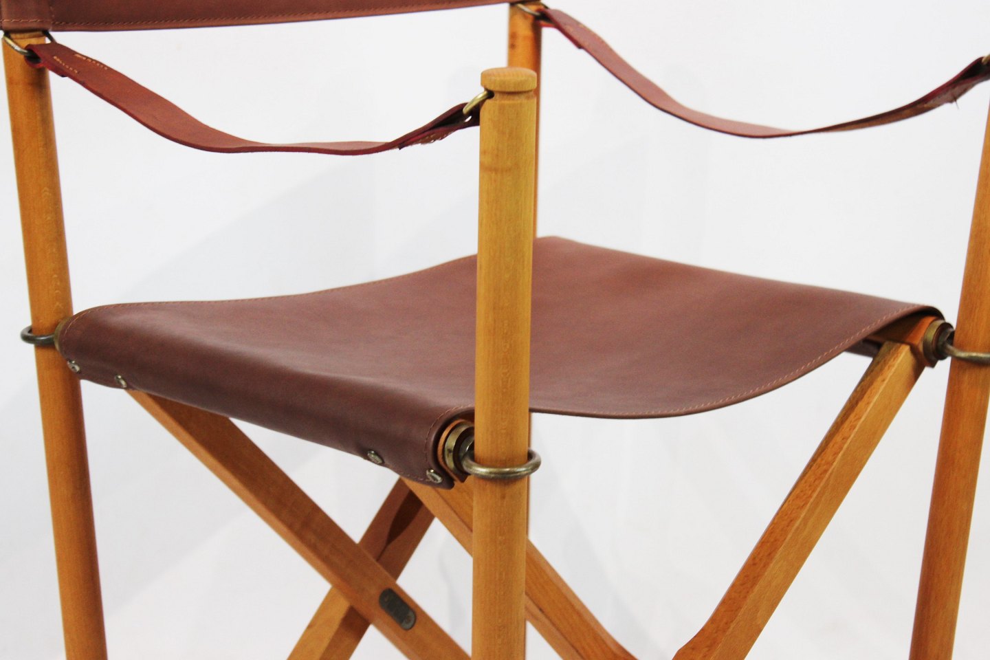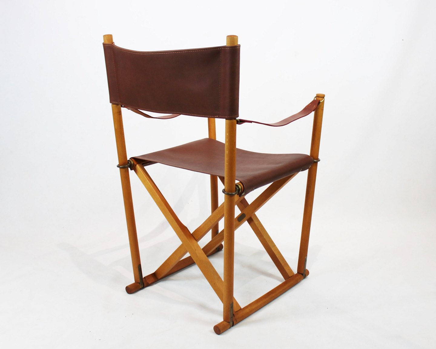 Foldestol, model MK99200, designet af Mogens Koch fra 1960erne. Stolen er af bøg og brunt kernelæder. Vi har i alt fem styk på lager.