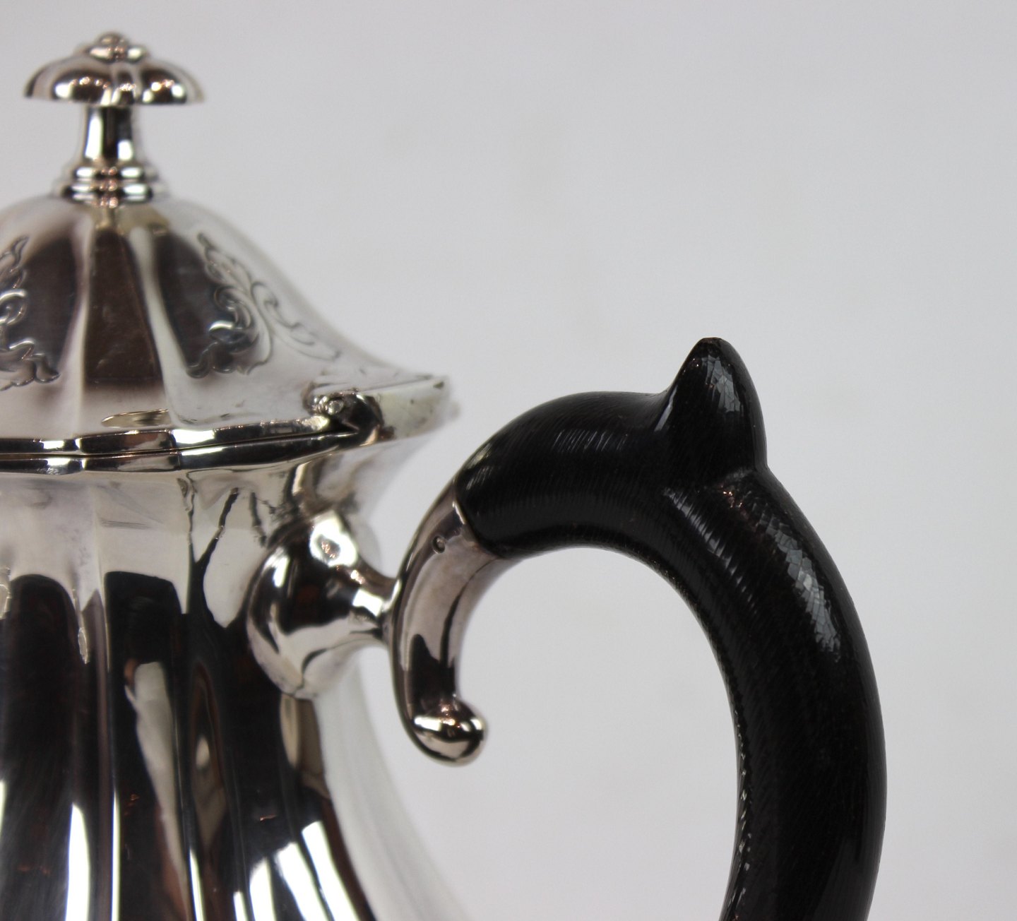 Set of coffee service decorated with engravings of hallmarked silver and ebony.