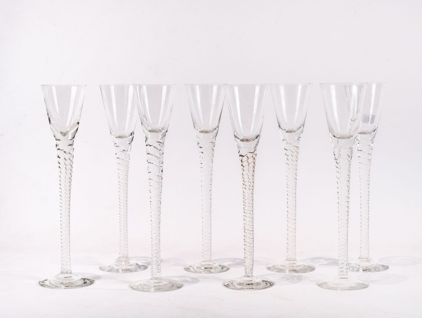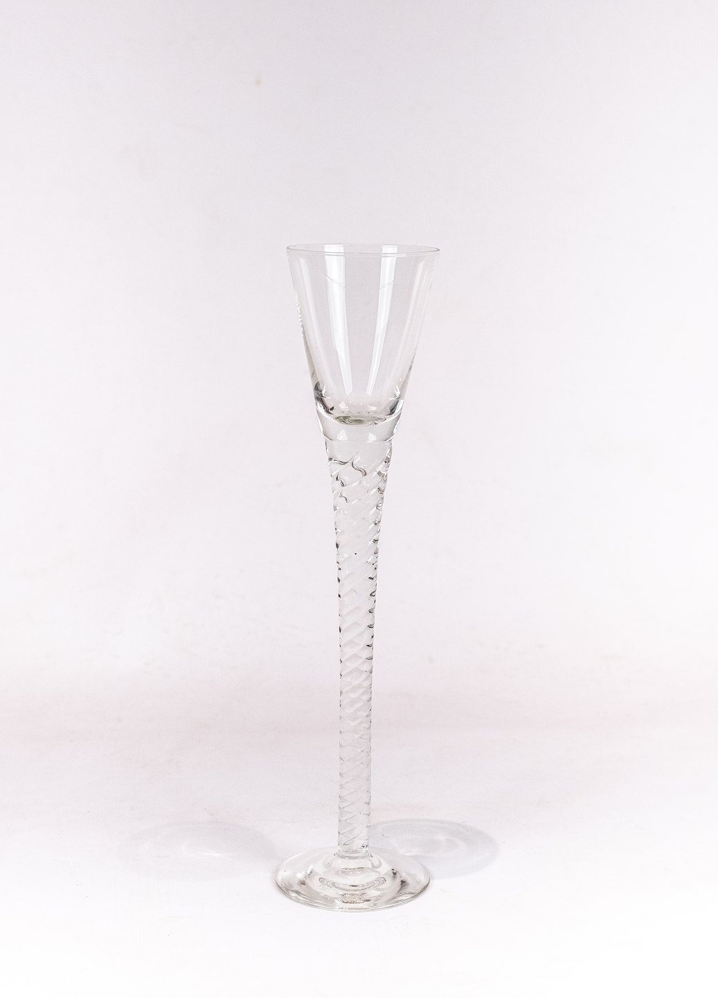 SolgtHøje snapseglas med snoet stilk, i flot stand. Spørg for antal på lager.