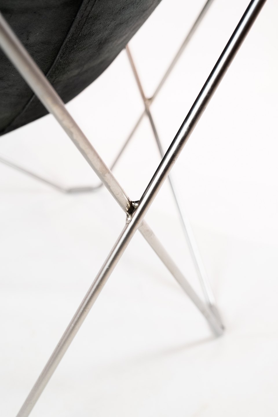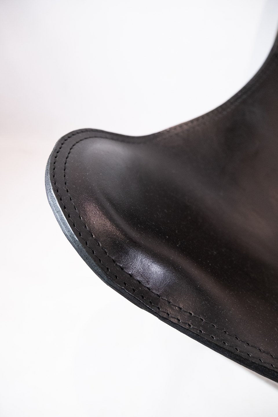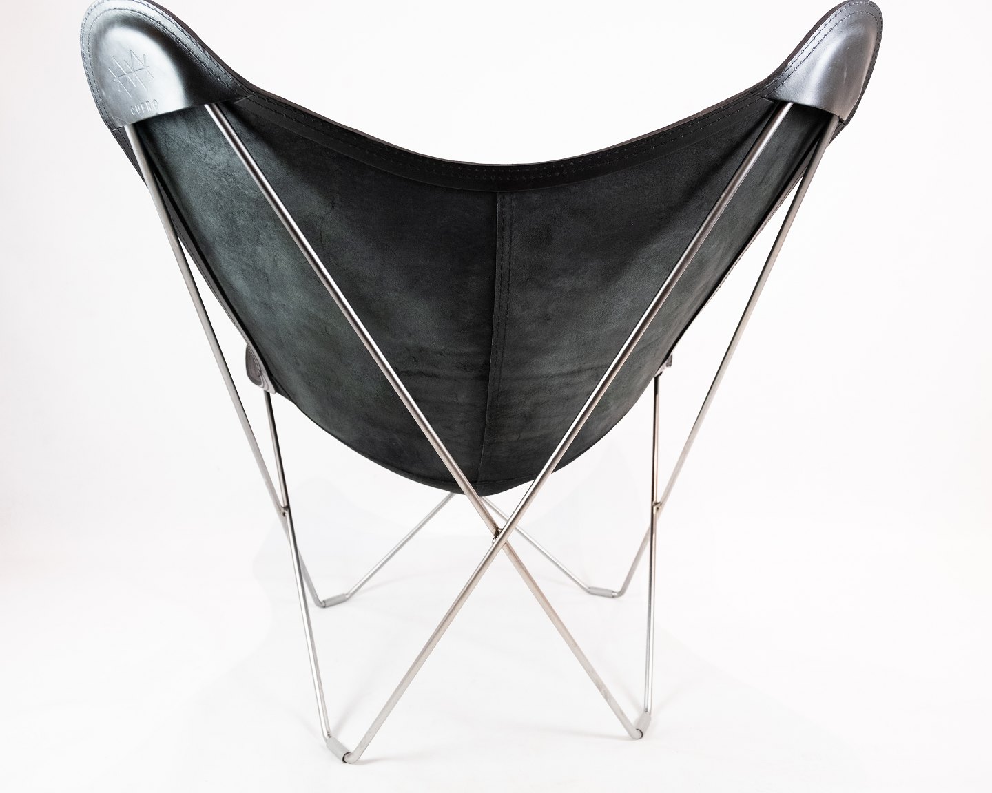 SolgtFlagermus lænestol, model Pampa Mariposa, i sort elegance læder af Cuero Design. Stolen er i flot brugt stand.