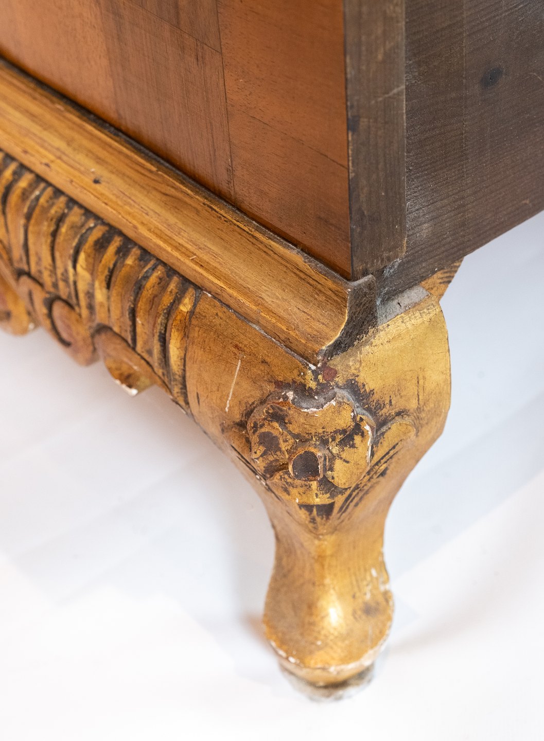 Kontakt os vedrørende prisKommode af poleret valnøddetræ dekoreret med forgyldning og håndtag af messing fra 1860erne. Møblet er i flot brugt stand.