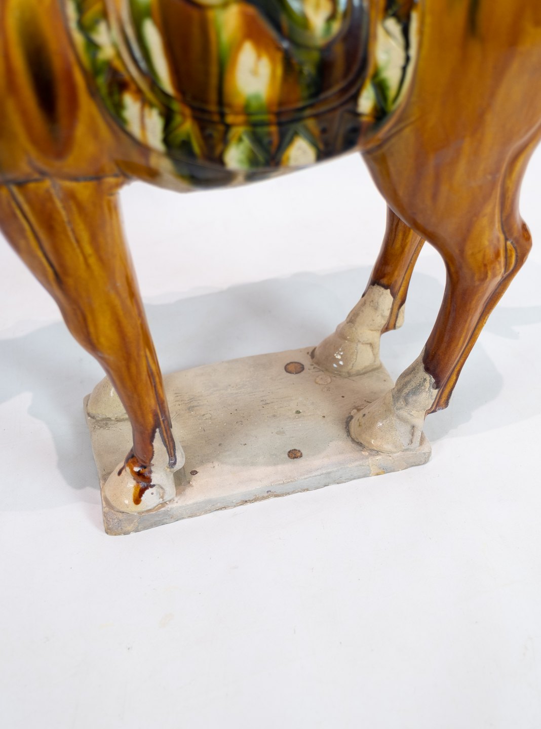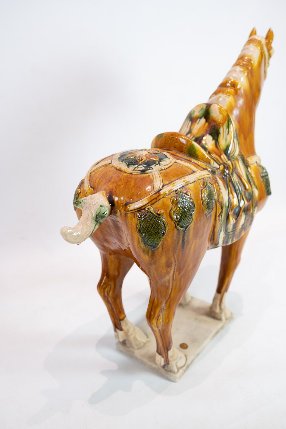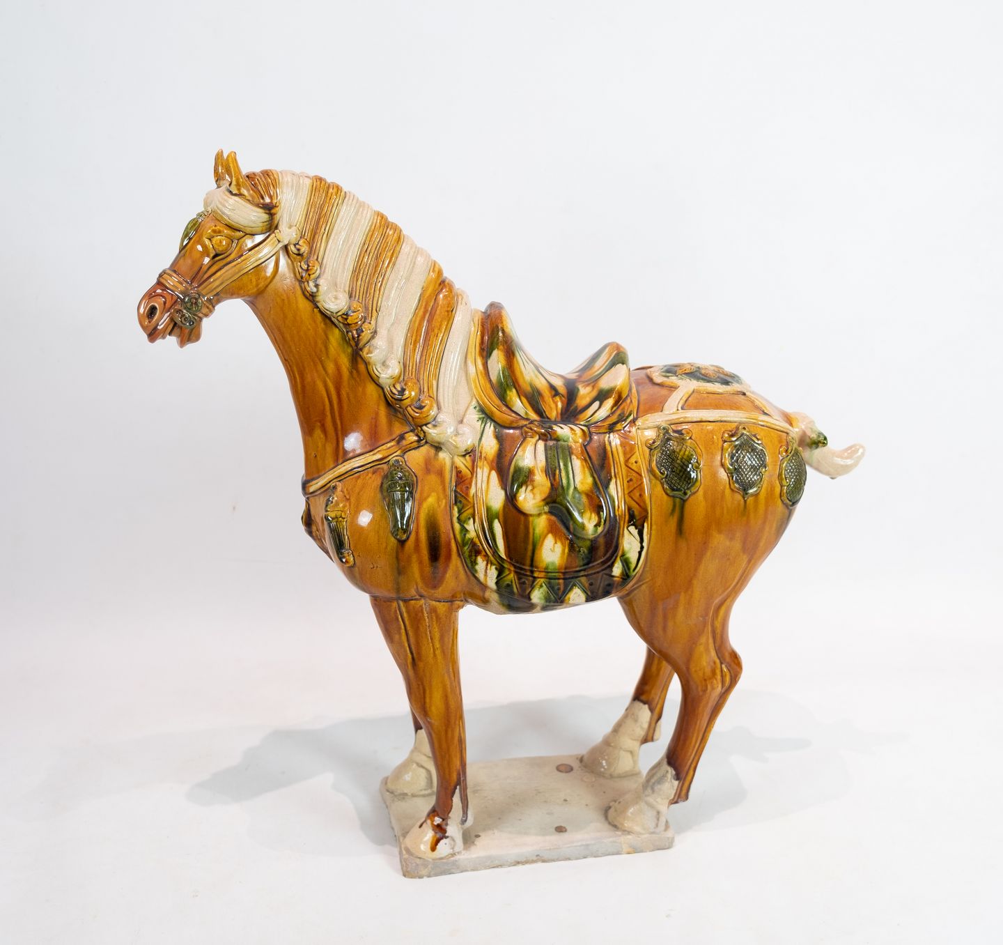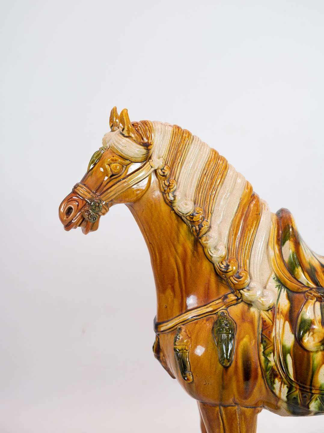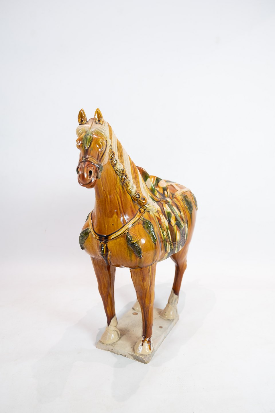Large ceramic horse glazed in dark yellow nuances from China around the 1920s. The horse is in great vintage condition.