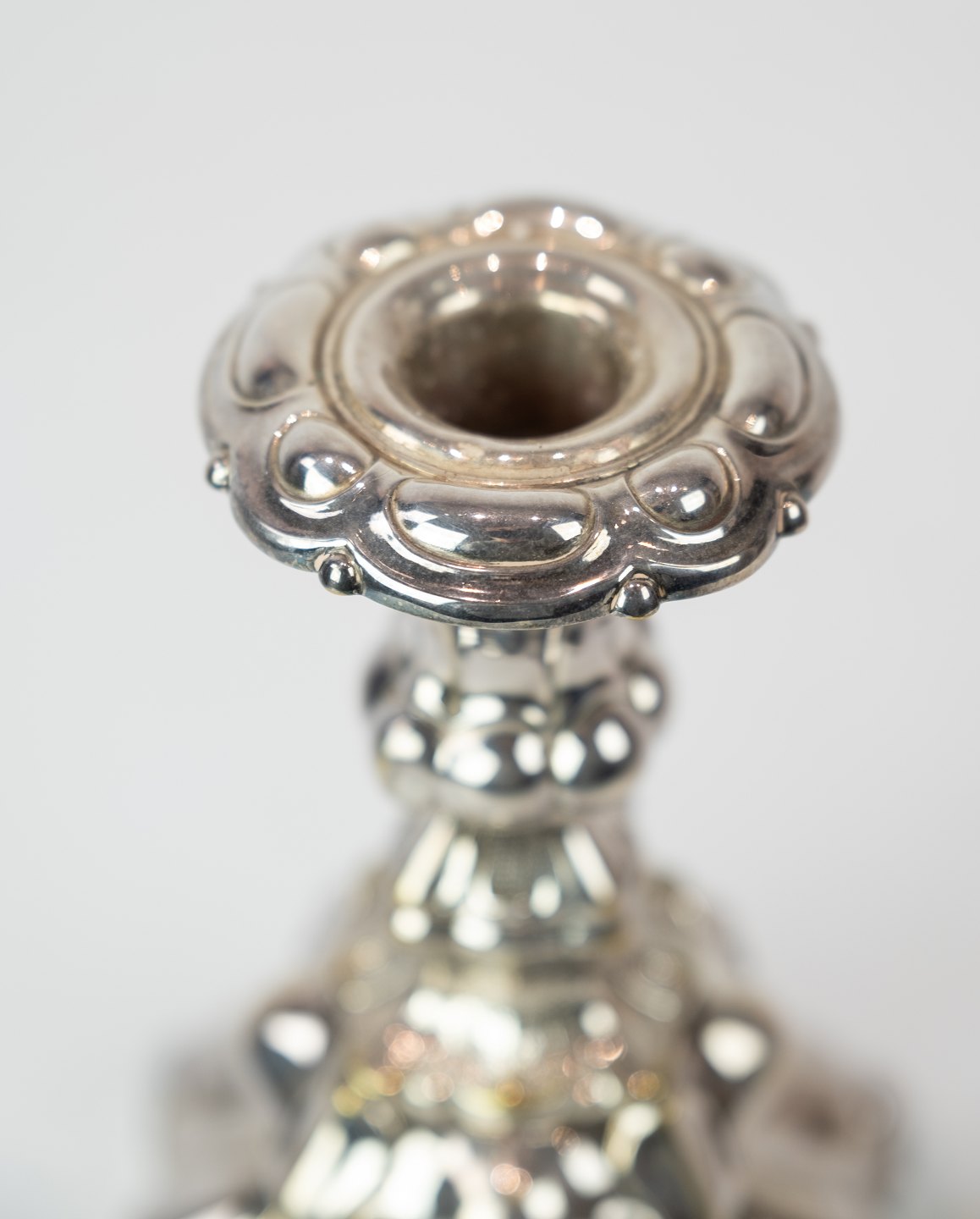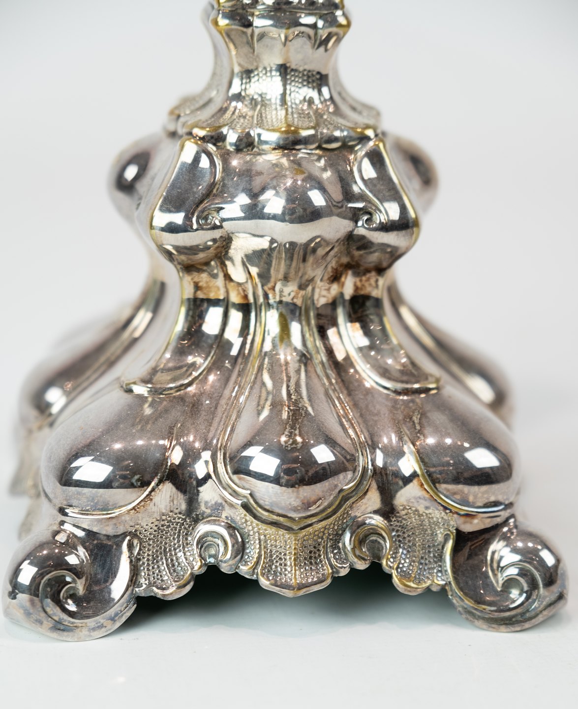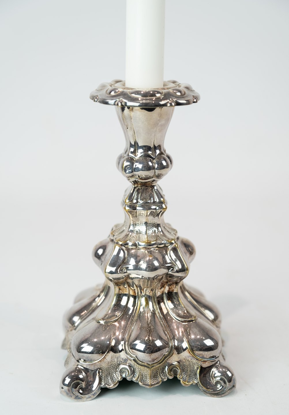 Et sæt forsølvede ny rokoko lysestager, i flot brugt stand fra 1920erne.