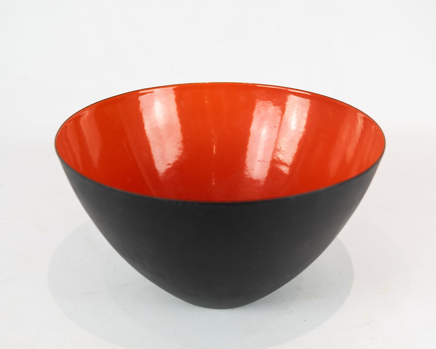 Krenit skål af Herbert Krenchel i sort metal og rød emalje. fra 1960erne. Skålen er i flot brugt stand.