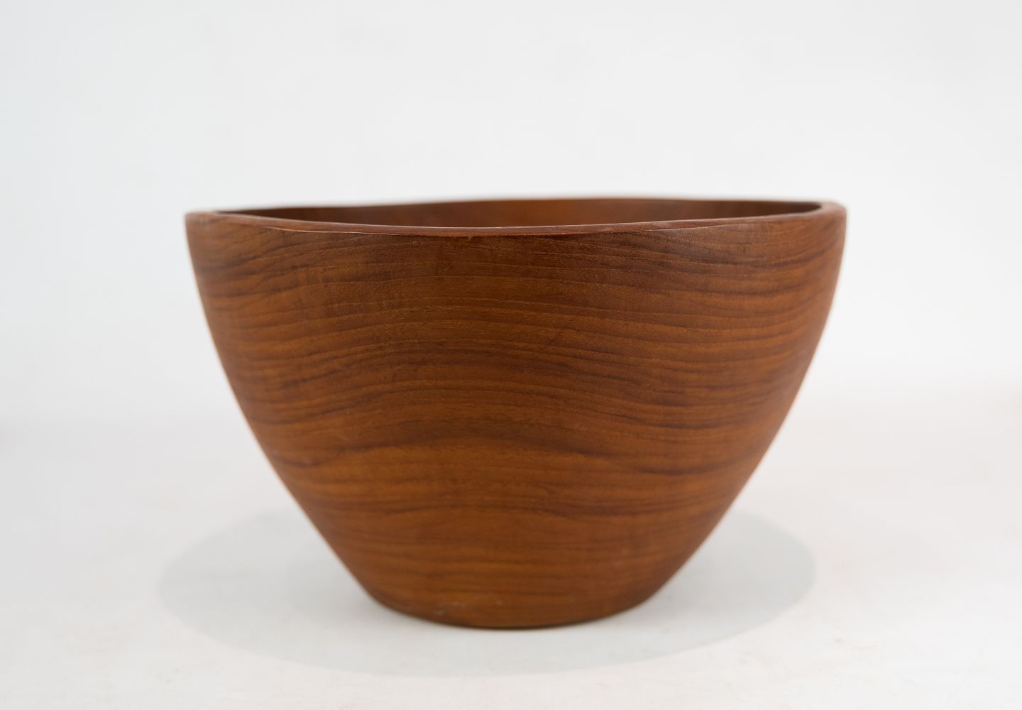 Stor skål i teak af dansk design fra 1960erne. Skålen er i flot brugt stand.