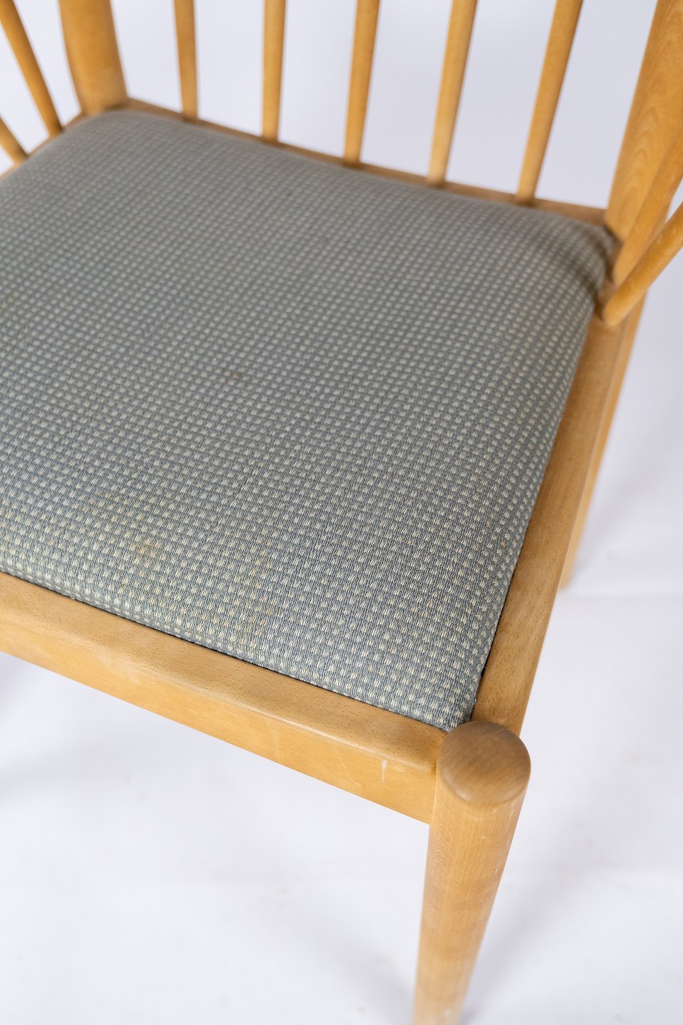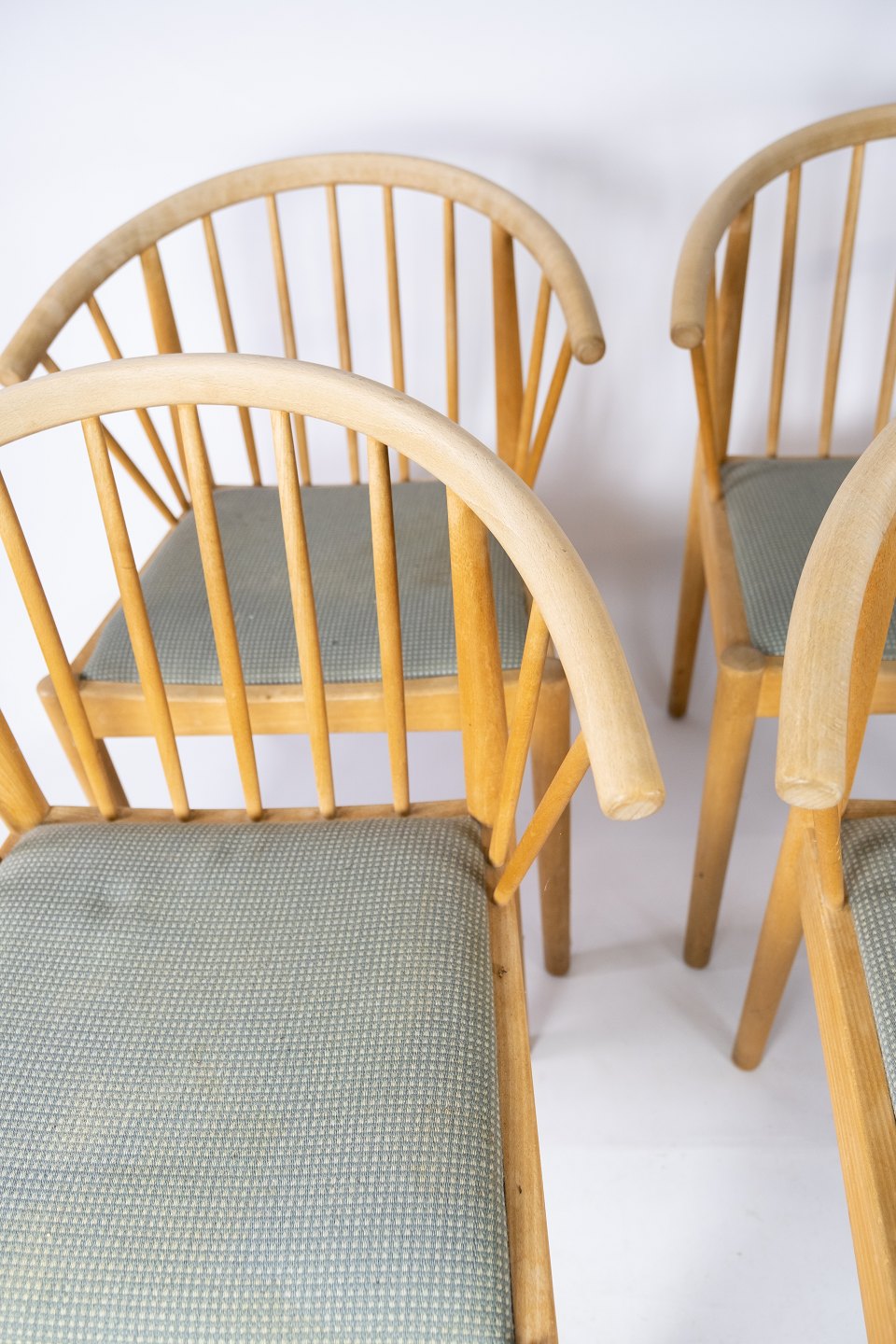 SolgtSæt af fire spisestuestole i sæbebehandlet bøg af dansk design fra 1960erne. Stolene kan ompolstres hvis ønsket.