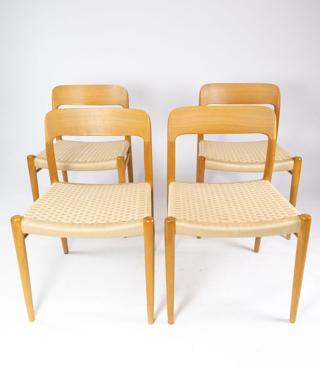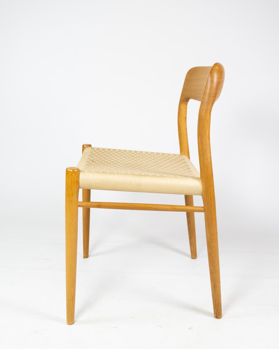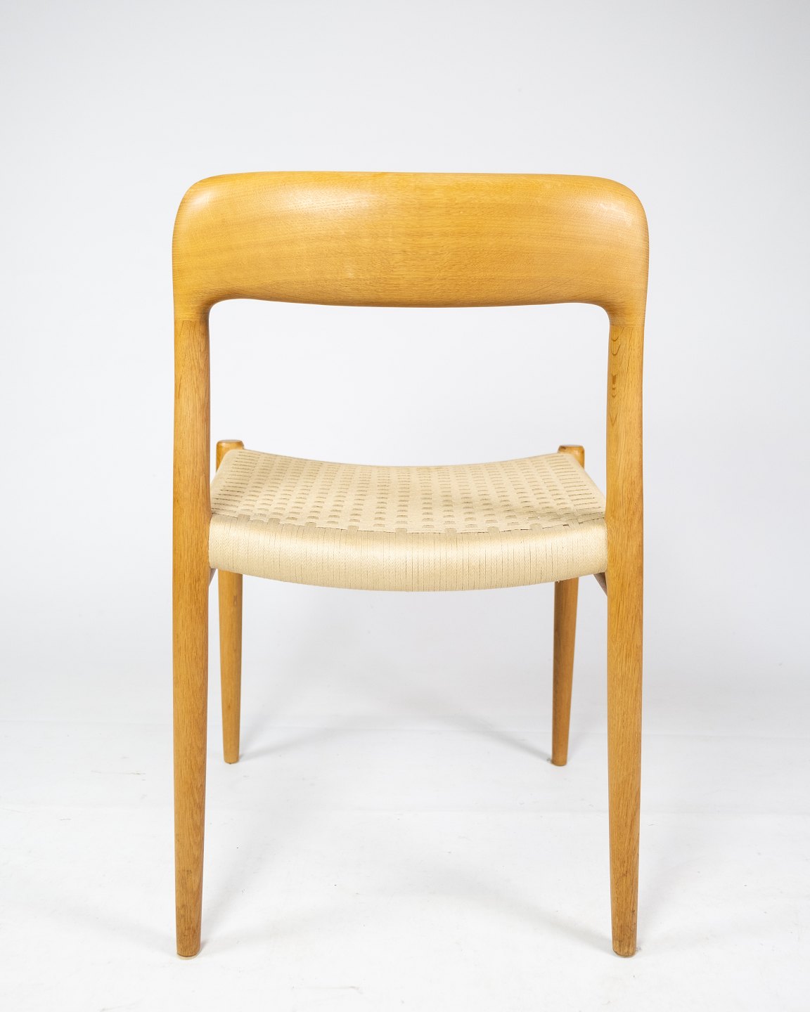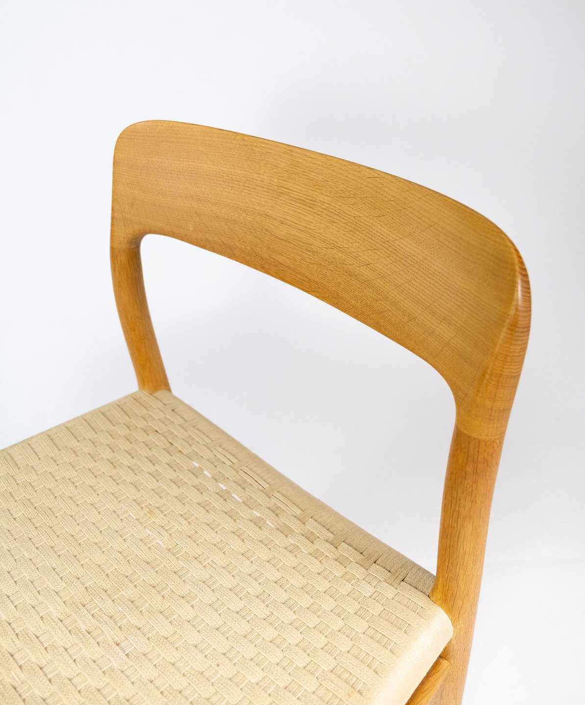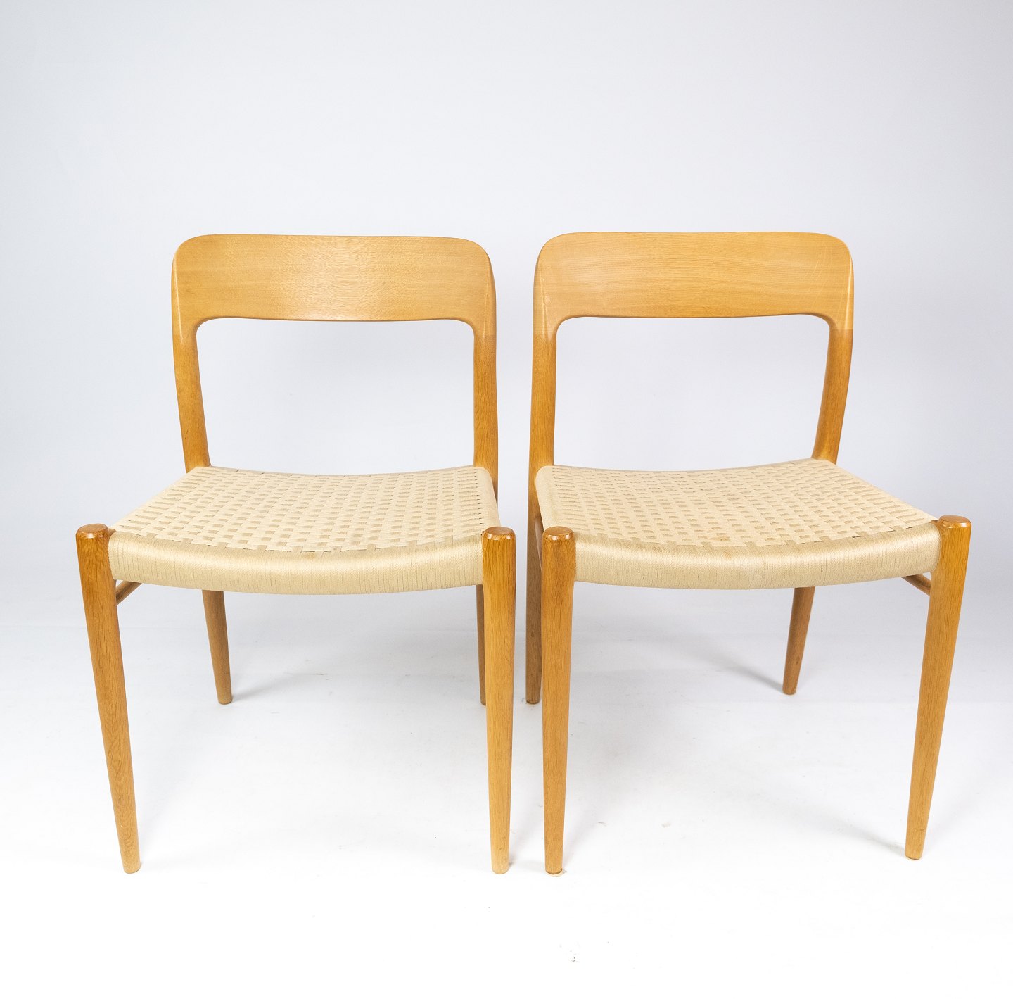 N.O. Møller, en af de mest betydningsfulde danske møbeldesignere, var kendt for sit sofistikerede og funktionelle design. Hans model 75 er et ikon inden for dansk designhistorie og er stadig eftertragtet i dag for sin enestående håndværksmæssige kvalitet og tidløse æstetik.