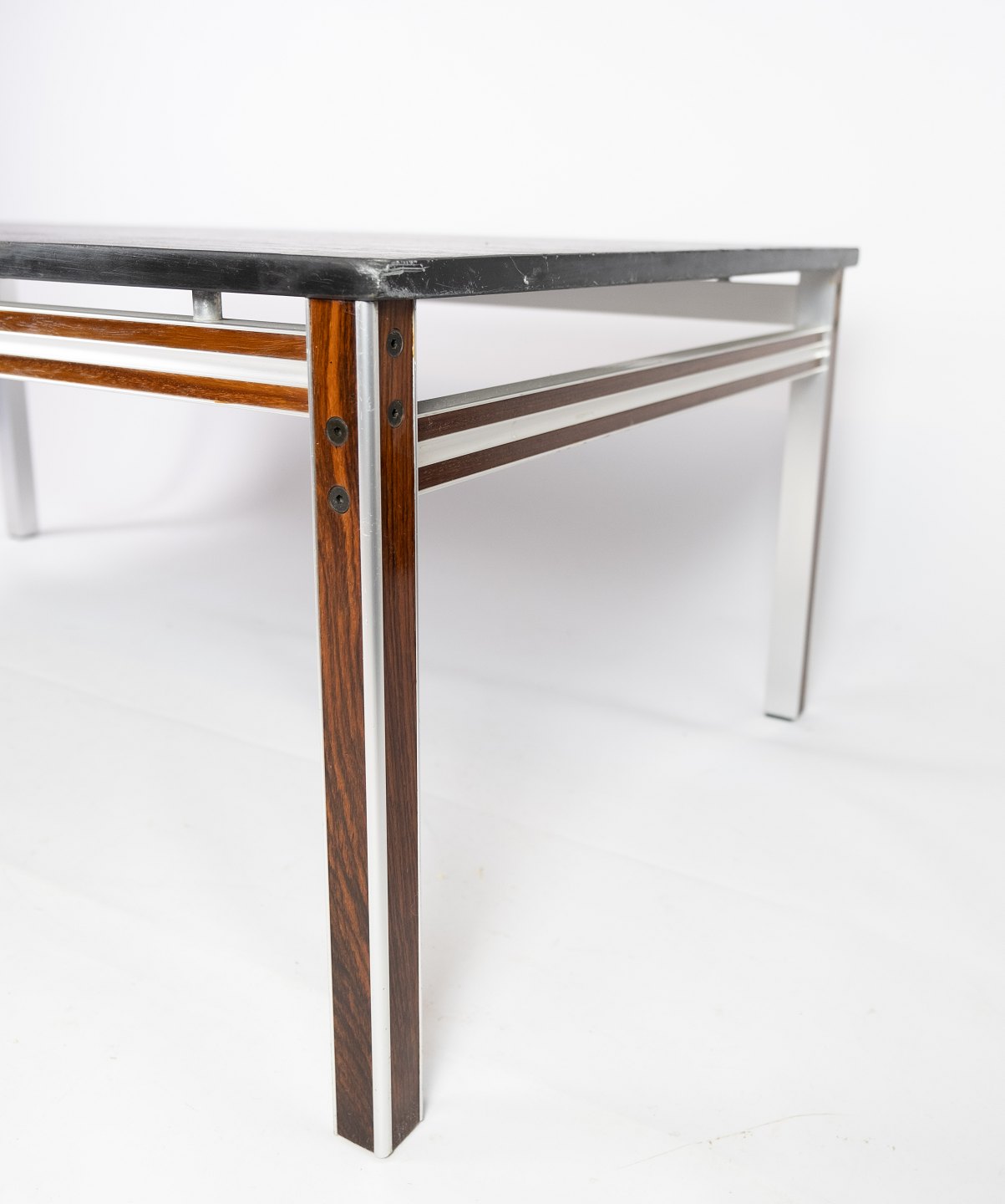 Coffee table with black slate plate and frame in rosewood and metal, of danish design from the 1970s. The table is in great vintage condition.