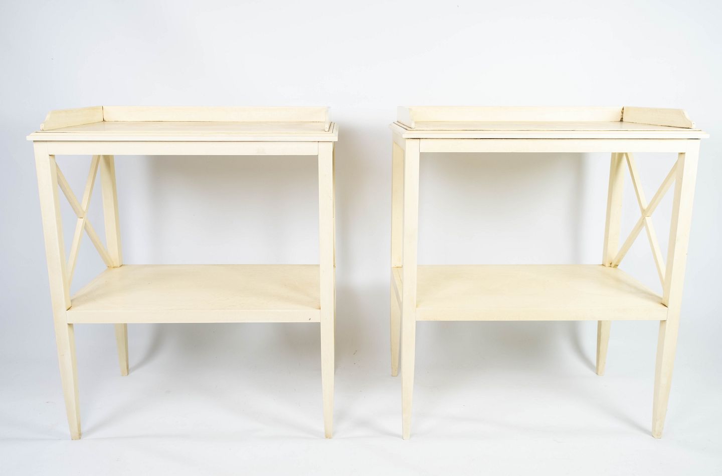 Et sæt af to hvidmalede konsol borde, i flot brugt stand.