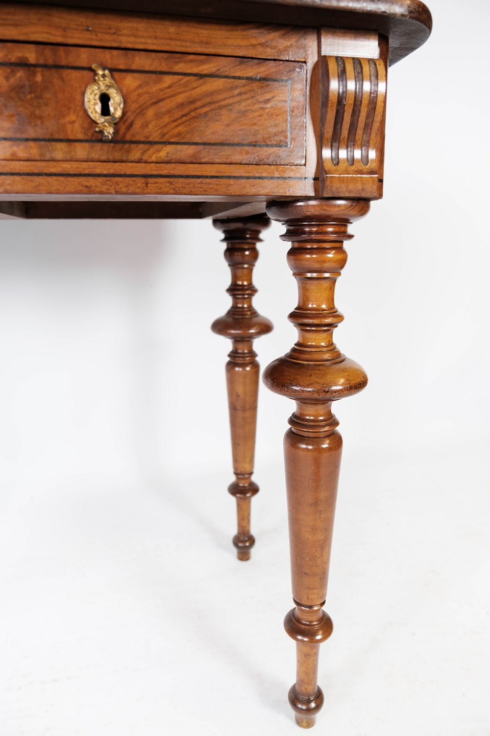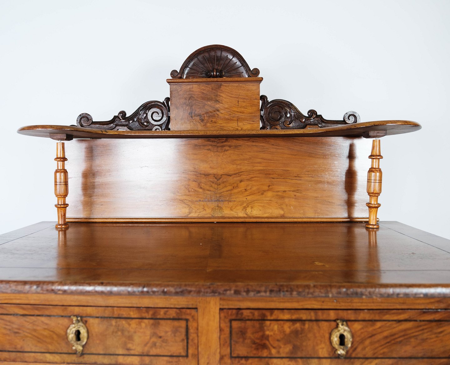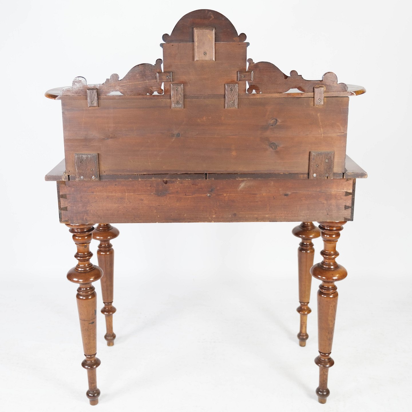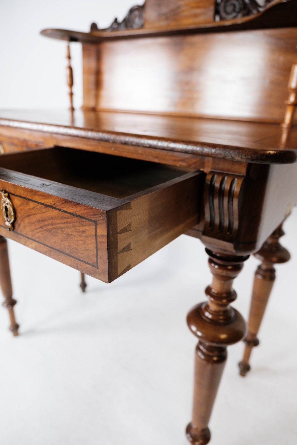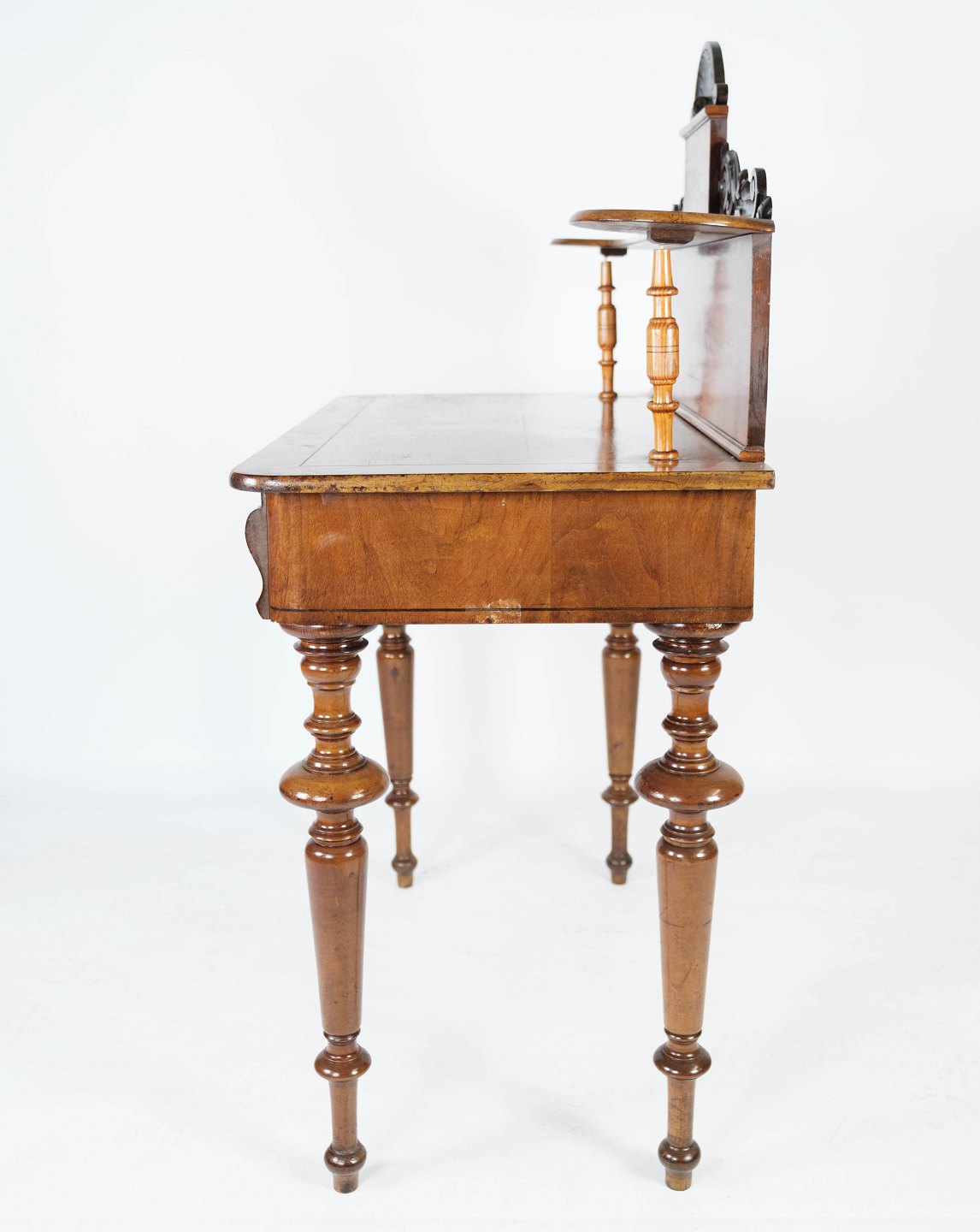 SoldDressing table/desk of walnut and decorated with carvings, in great antique condition from the 1880s.